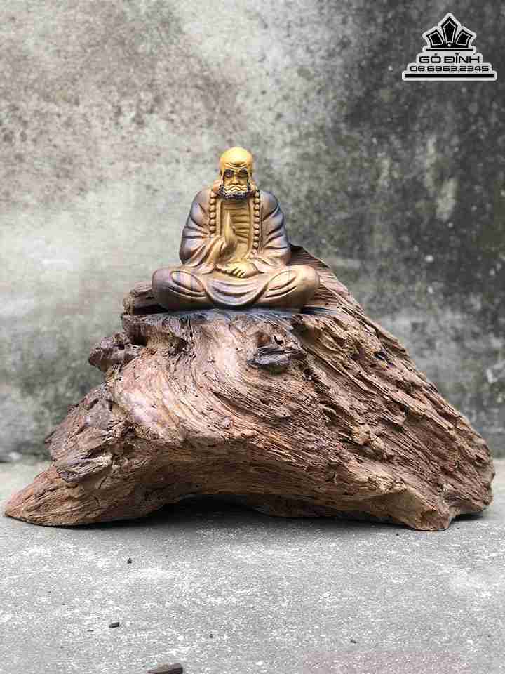Tượng Đạt Ma Ngồi Thiền Gỗ Bách Xanh Cao 35 Ngang 46 Sâu 21 (cm)