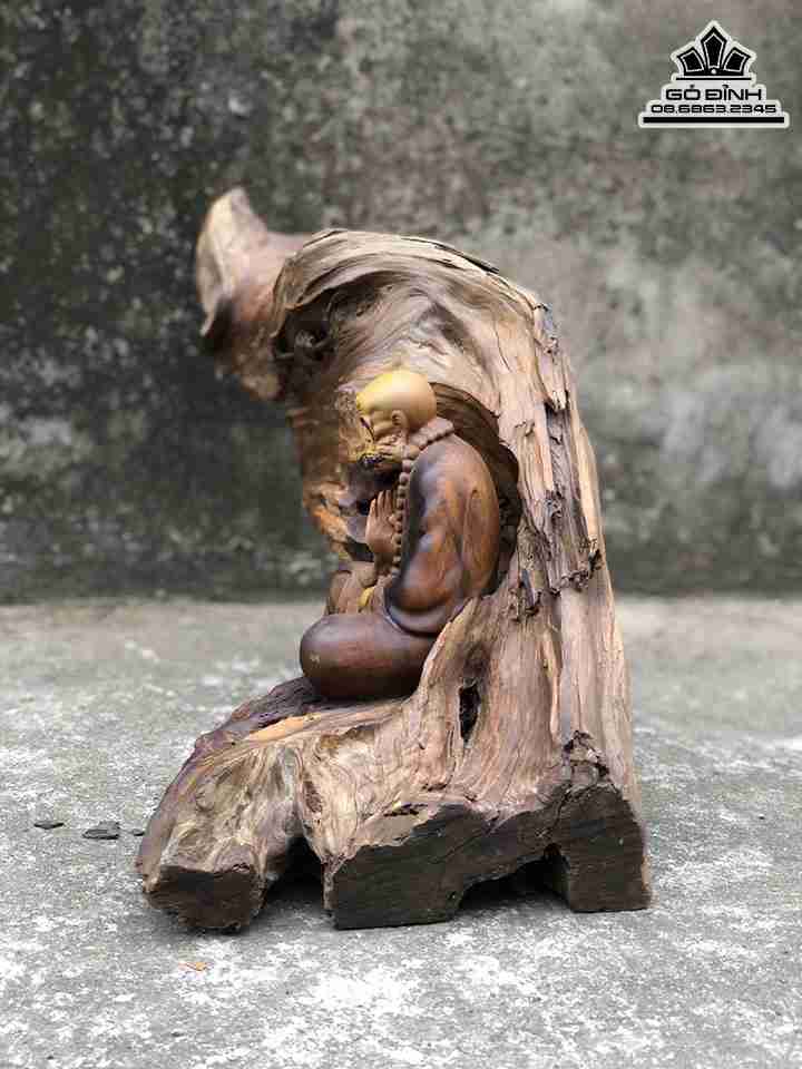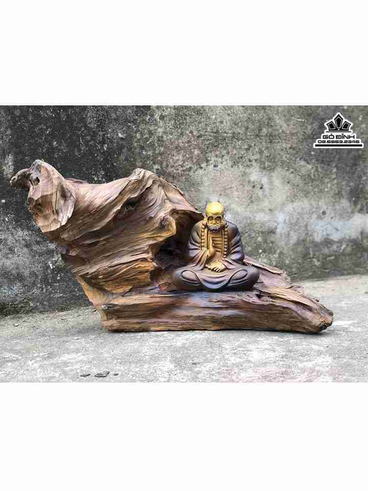 Tượng Đạt Ma Ngồi Thiền Gỗ Bách Xanh Cao 29 Ngang 52 Sâu 22 (cm)