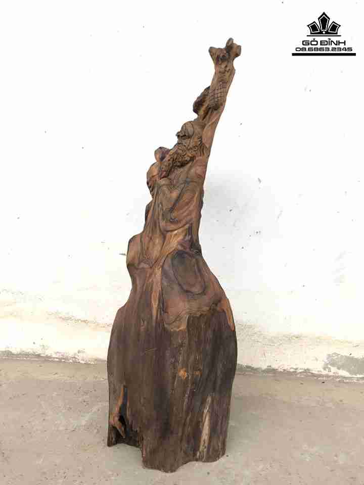 Tượng Đạt Ma Sư Tổ Gỗ Bách Xanh Cao 65 Ngang 23 Sâu 18 (cm)