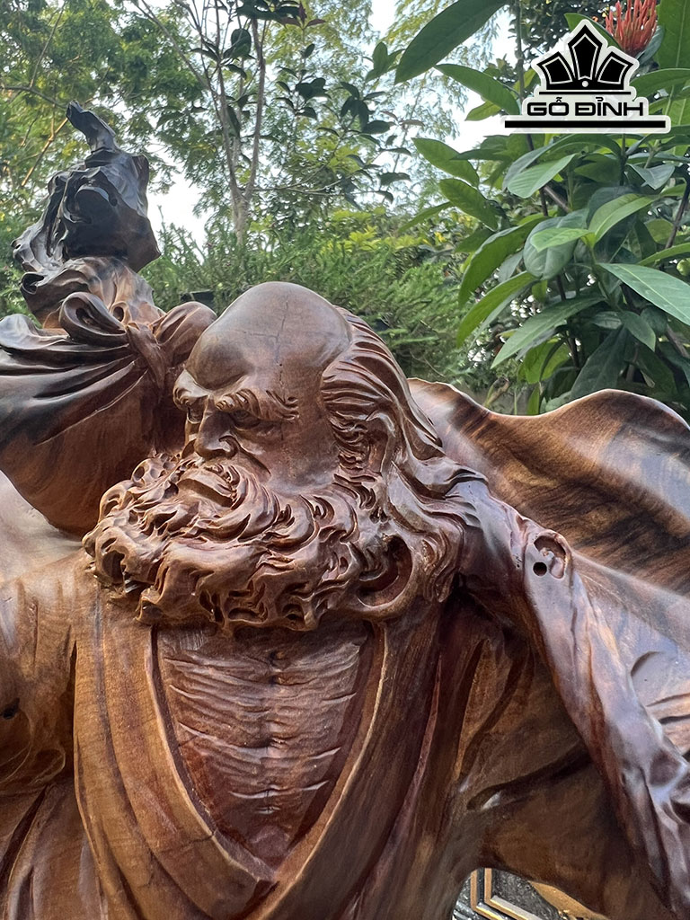 Tượng Đạt Ma Sư Tổ Gỗ Bách Xanh Cao 46 Ngang 76 Sâu 38 (cm)