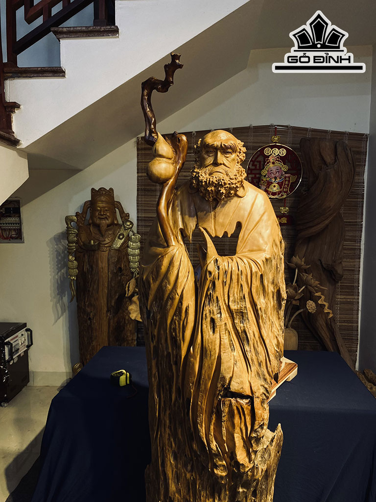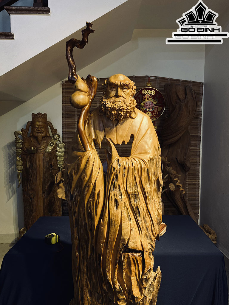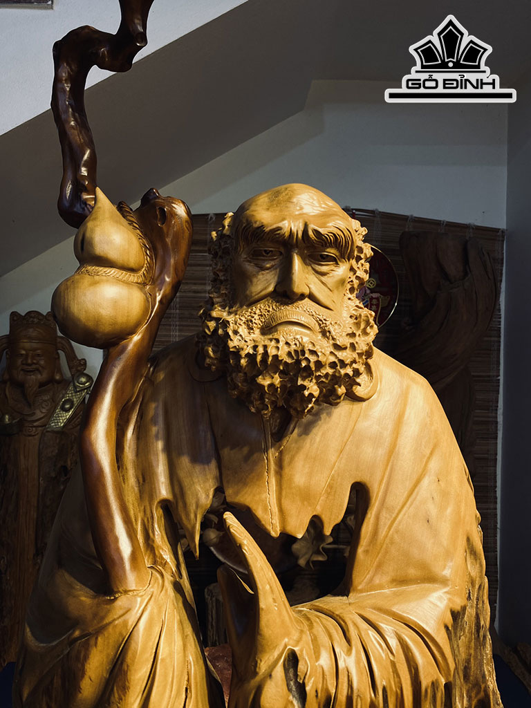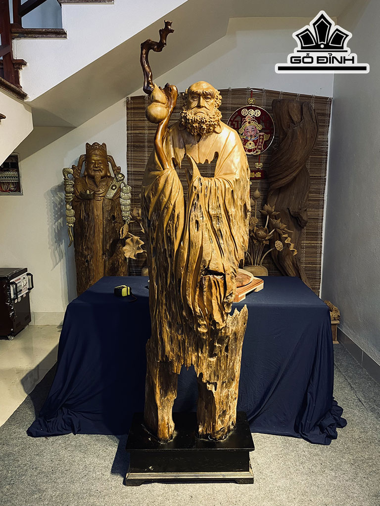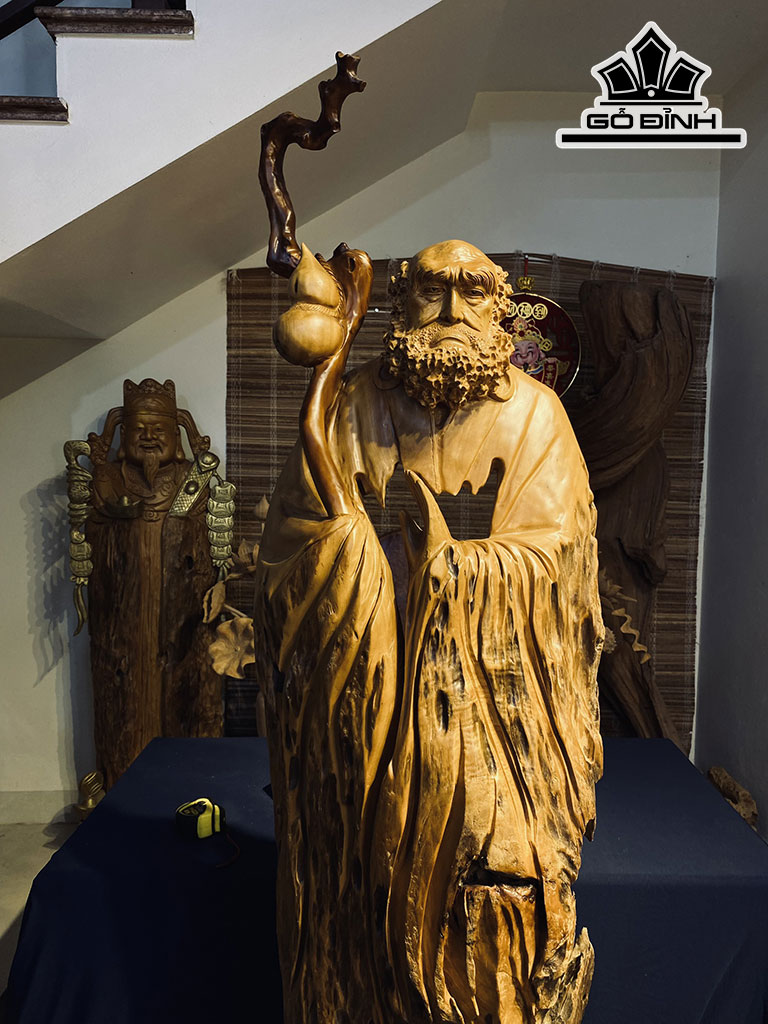 Tượng Đạt Ma Sư Tổ Gỗ Dổi Cao 172 Ngang 45 Sâu 20 (cm)