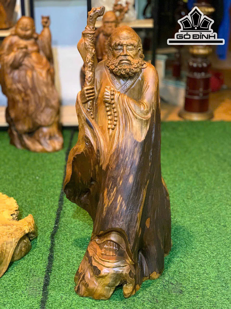 Tượng Đạt Ma Sư Tổ Gỗ Lũa Ngọc Am Cao 95 Ngang 40 Sâu 42 (cm)