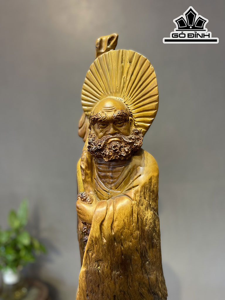 Tượng Đạt Ma Sư Tổ Gỗ Pơ Mu Cao 76 Ngang 22 Sâu 23 (cm)