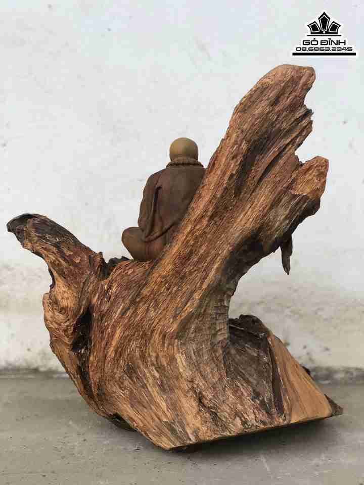 Tượng Đạt Ma Sư Tổ Ngồi Thiền Gỗ Bách Xanh Cao 42 Ngang 39 Sâu 22 (cm)