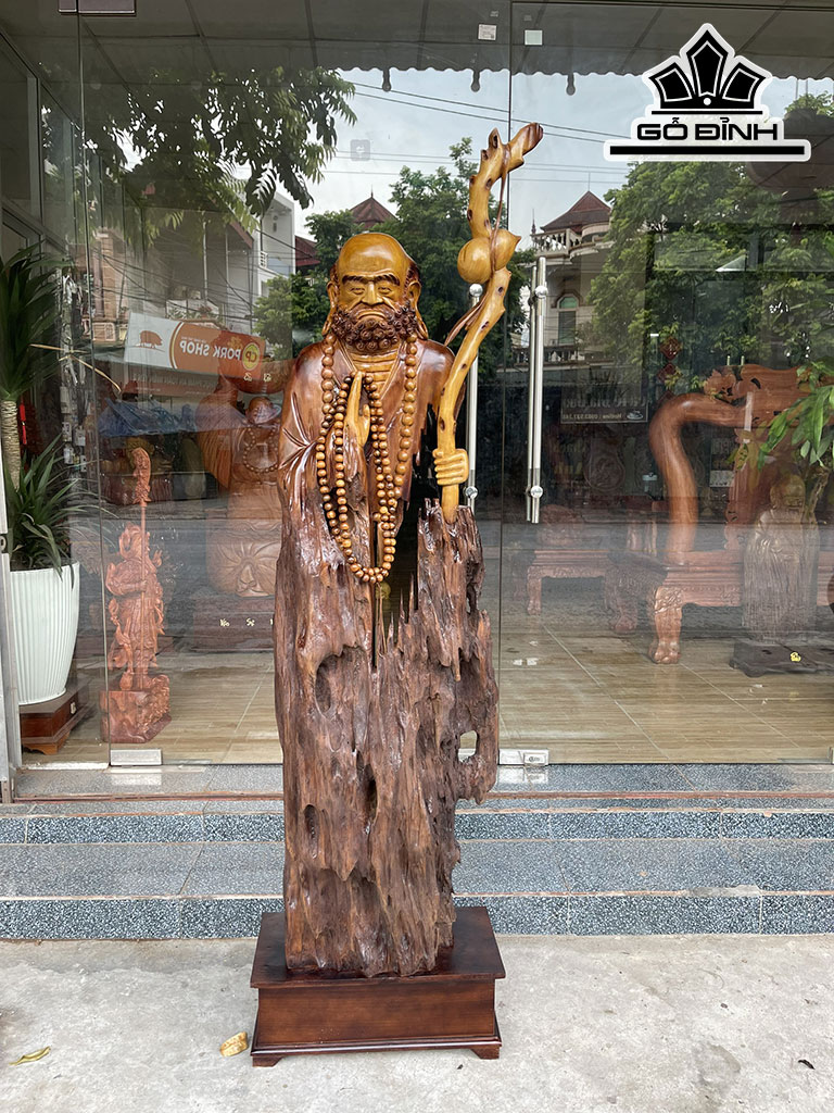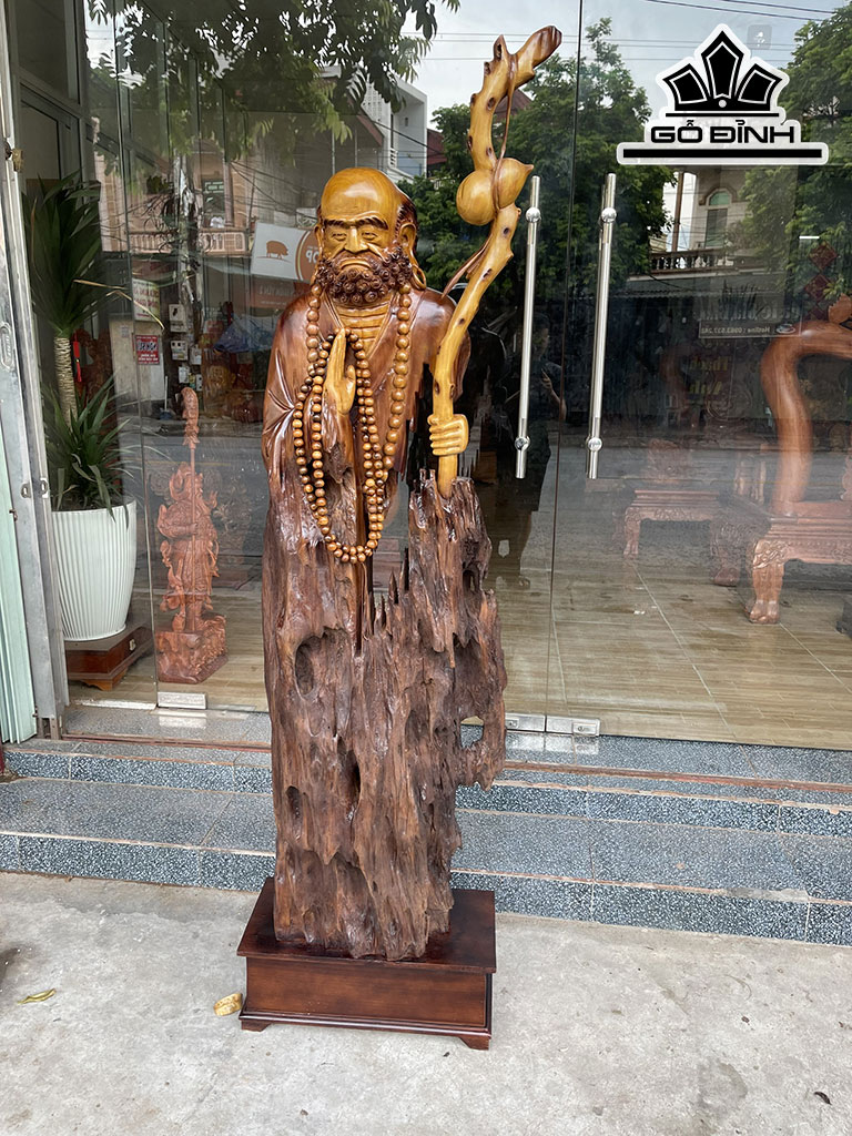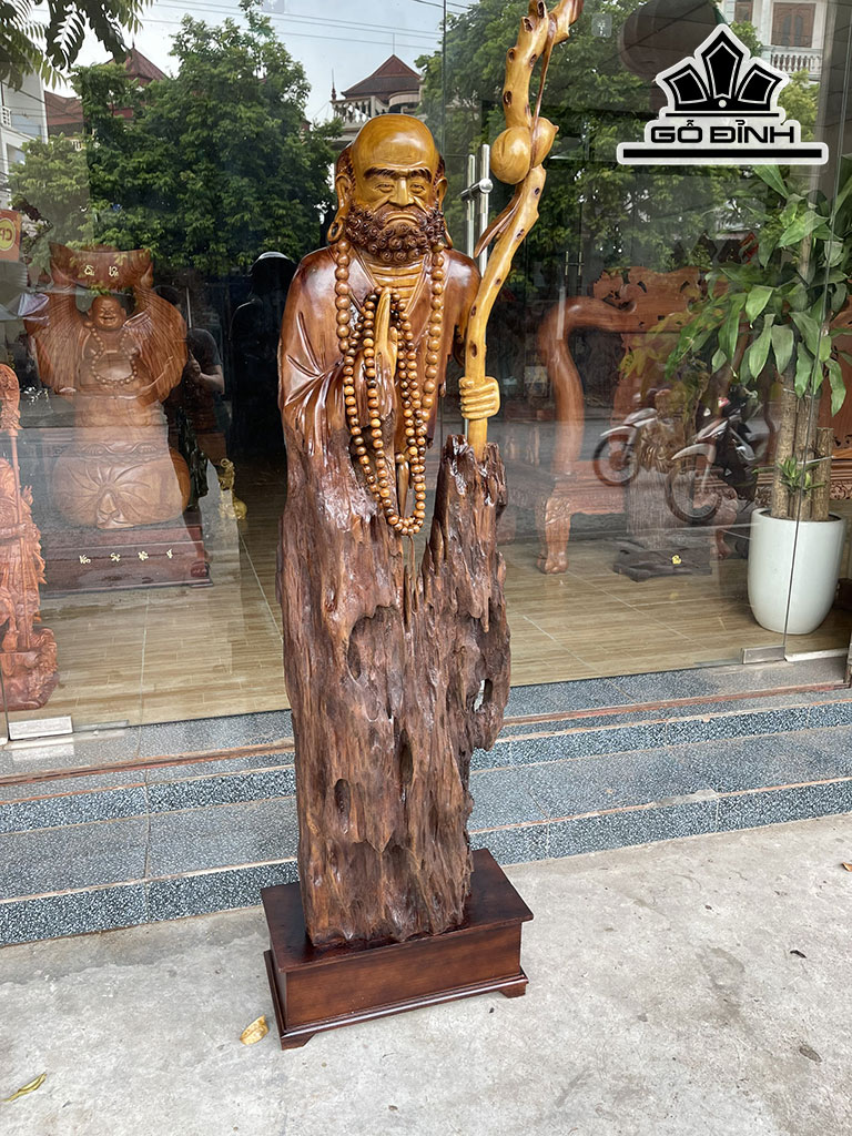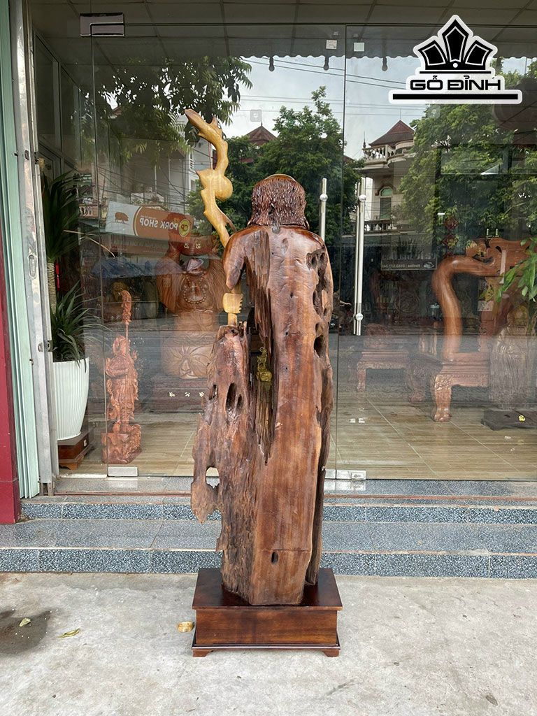 Tượng Đạt Ma Tâm Rỗng Gỗ Lũa Dổi Cao 186 Ngang 50 Sâu 25 (cm)