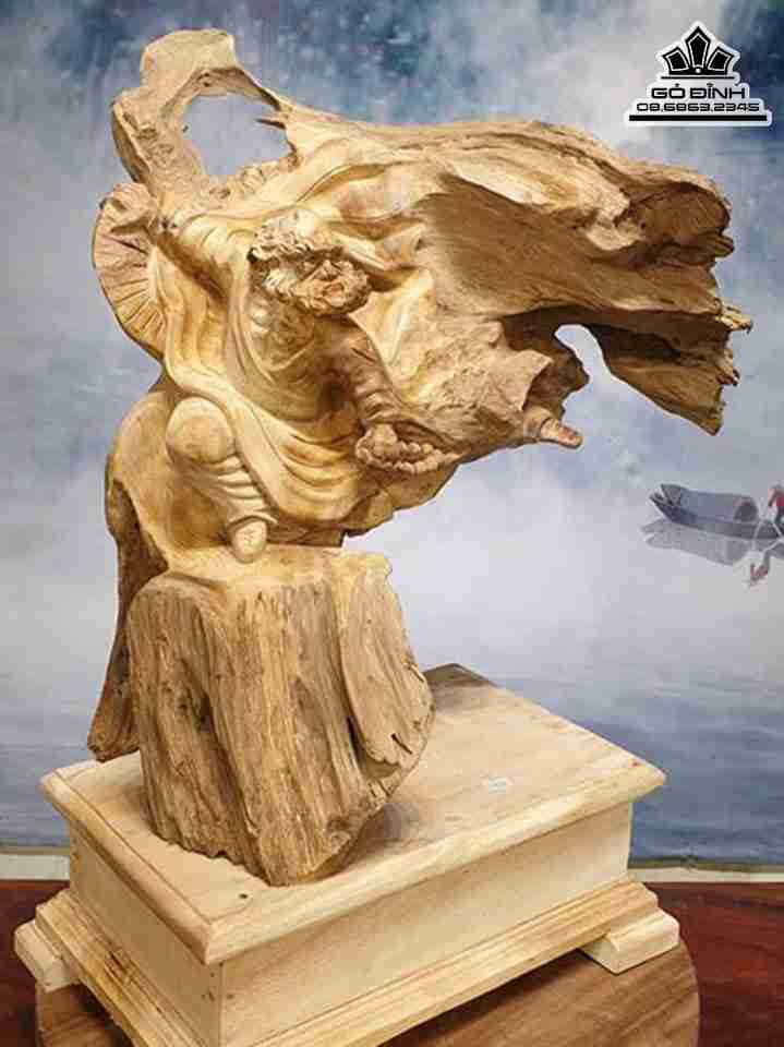 Tượng Đạt Ma Xuất Quyền Gỗ Ngọc Am Cao 65 Ngang 56 Sâu 38 (cm)