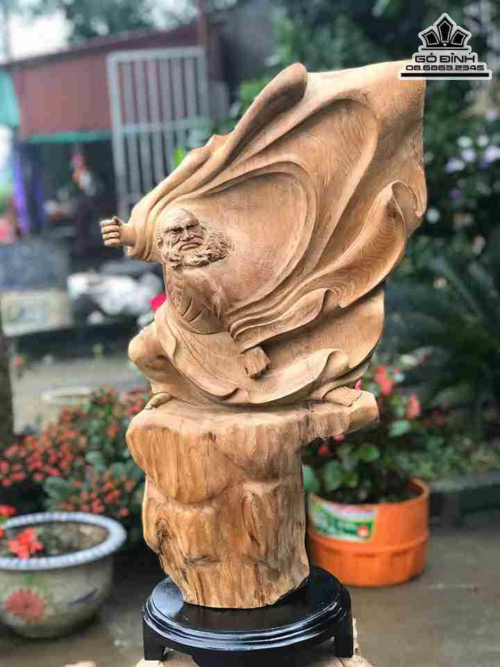 Tượng Đạt Ma Xuất Quyền Gỗ Ngọc Am Cao 62 Rộng 41 Sâu 17 (cm)