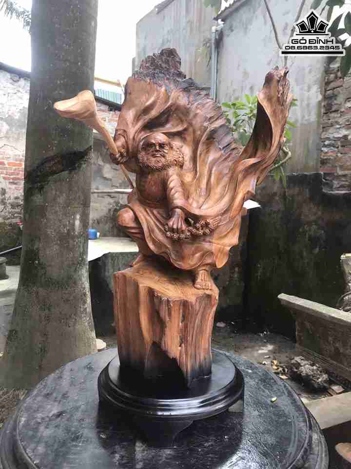 Tượng Đạt Ma Xuất Quyền Gỗ Ngọc Am Cao 59 Ngang 30 Sâu 26 (cm)