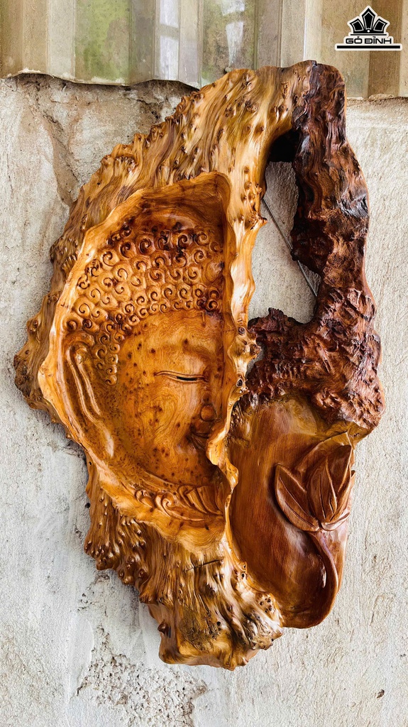 Tượng Bái Phật Liên Hoa Gỗ Nu Ngọc Am Cao 48 Ngang 30 Sâu 6 (cm)
