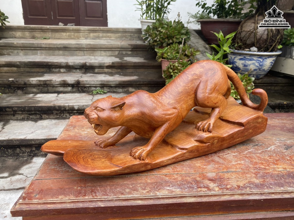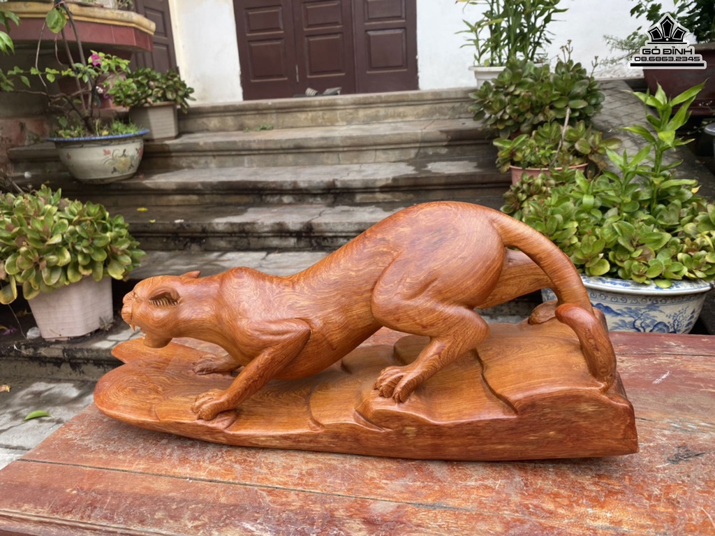 Tượng Báo Gỗ Hương Cao 24 Ngang 58 Sâu 17 (cm)