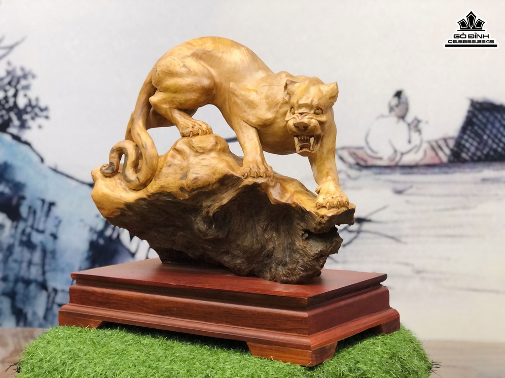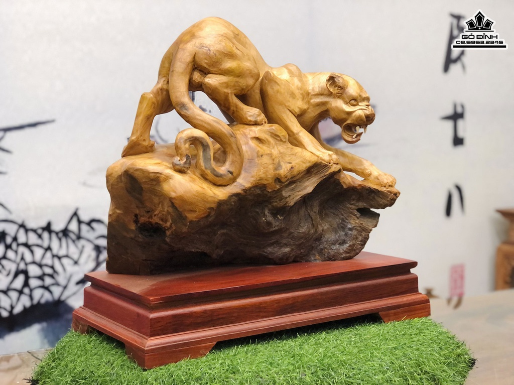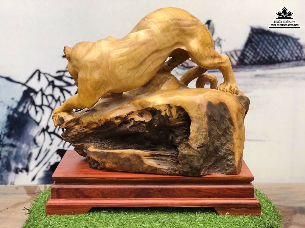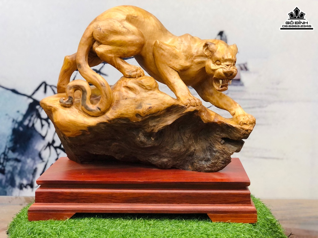 Tượng Báo Gỗ Pơ Mu Cao 40 Ngang 52 Sâu 25 Cả Kỷ 50 (cm)
