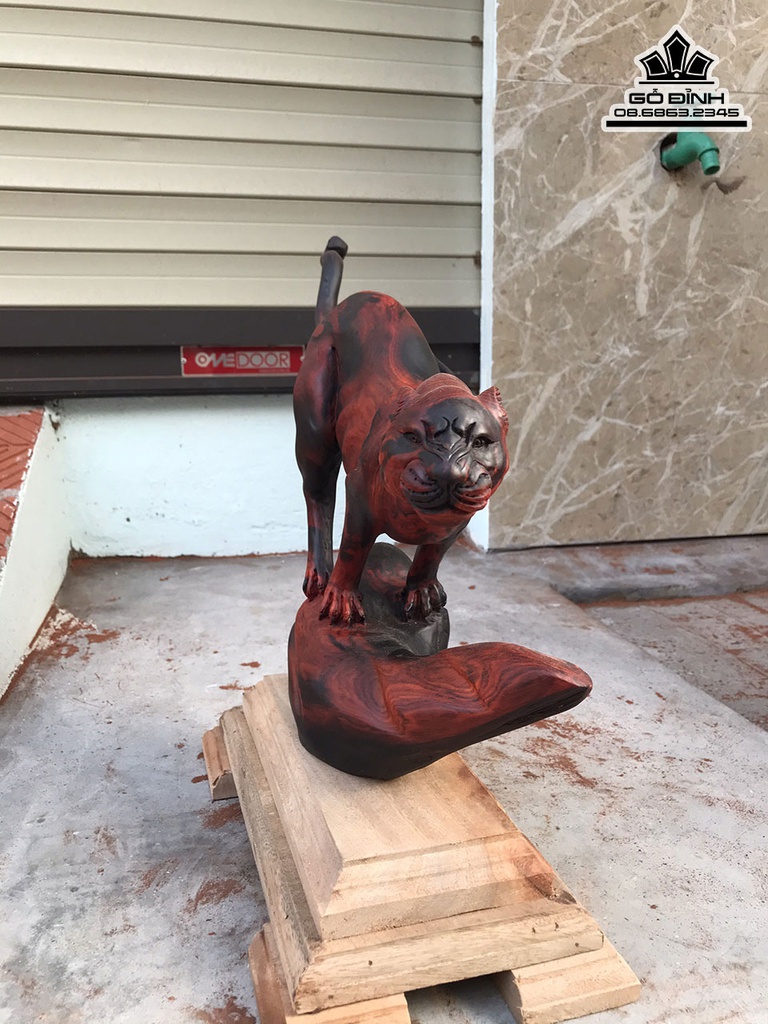 Tượng Báo Gỗ Trắc Liền Khối Cao 31 Ngang 46 Sâu 12 (cm)