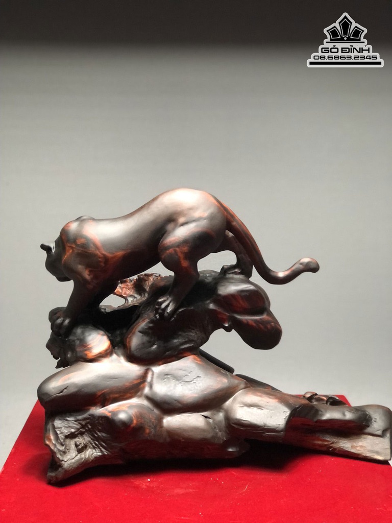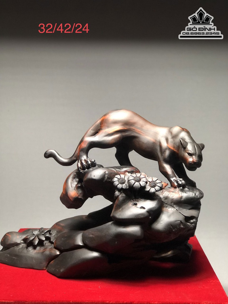 Tượng Báo Gỗ Trắc Liền Khối Cao 32 Ngang 42 Sâu 24 (cm)