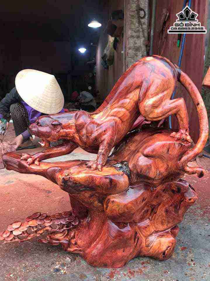 Tượng Báo Săn Mồi Gỗ Cẩm Chỉ Cao 72 Rộng 70 Sâu 30 (cm)