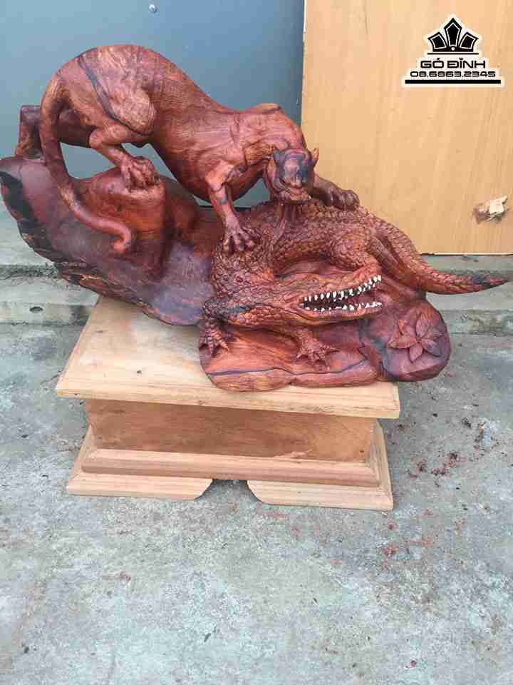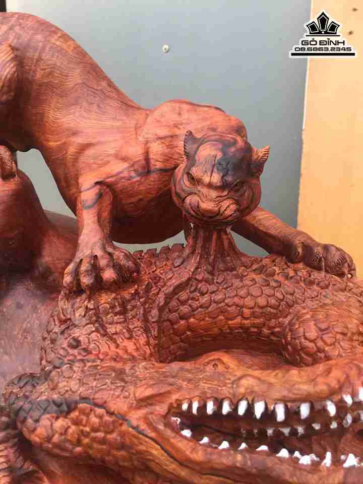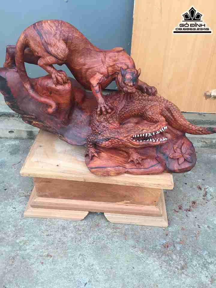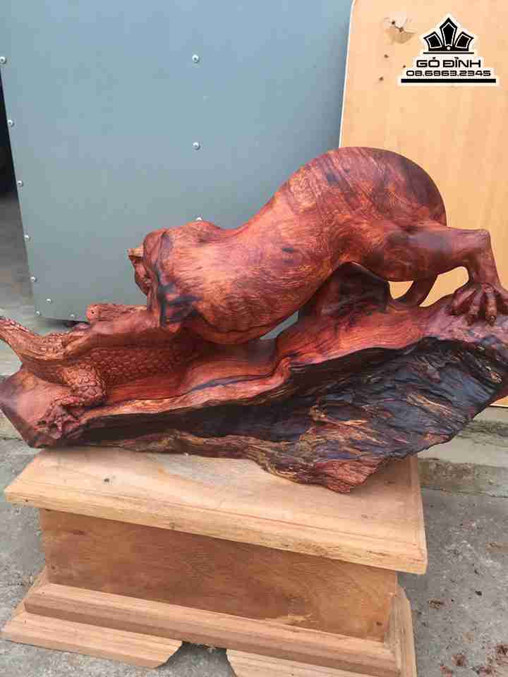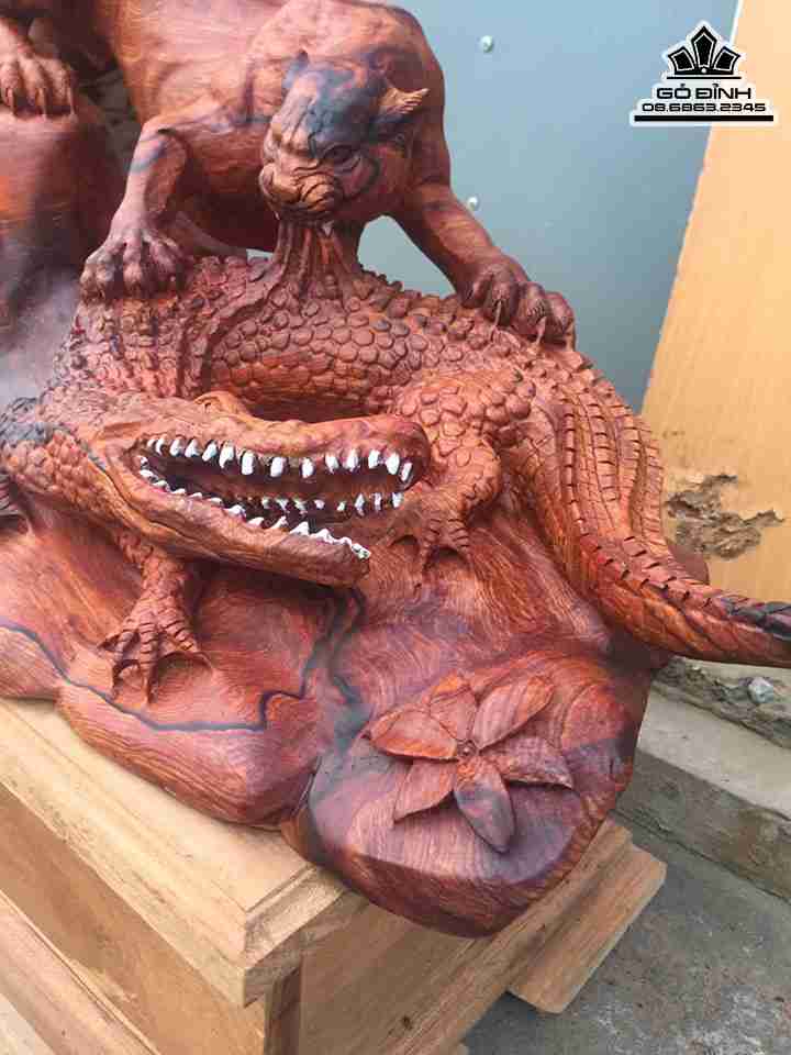 Tượng Báo Săn Mồi Gỗ Cẩm Chỉ Cao 33 Ngang 63 Sâu 27 (cm)