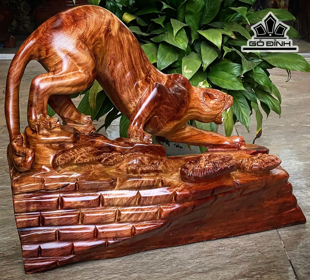 Tượng Báo Săn Mồi Gỗ Hương Cao 38 Ngang 50 Sâu 25 (cm)
