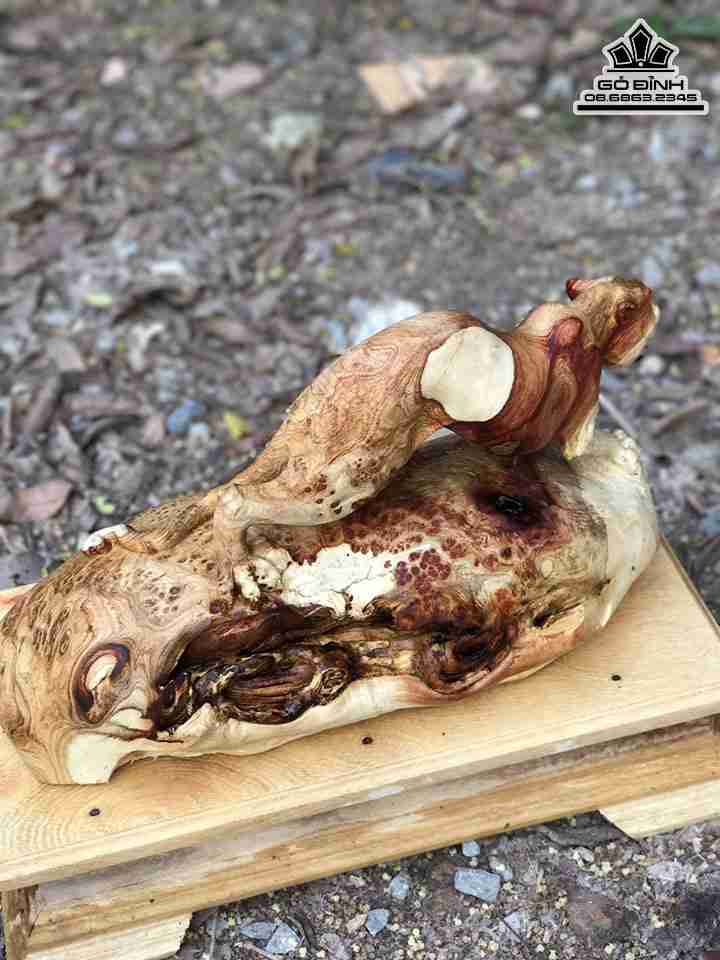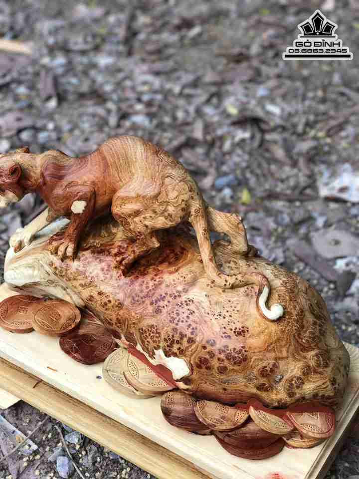Tượng Báo Săn Mồi Gỗ Nu Hương Cao 39 Ngang 50 Sâu 27 (cm)