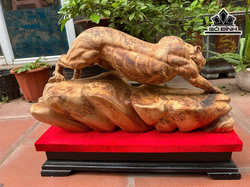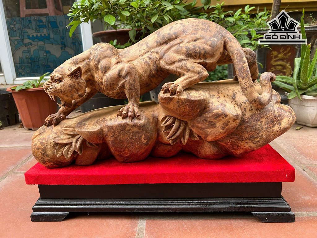 Tượng Báo Săn Mồi Gỗ Nu Ngọc Am Cao 29 Ngang 52 Sâu 20 (cm)