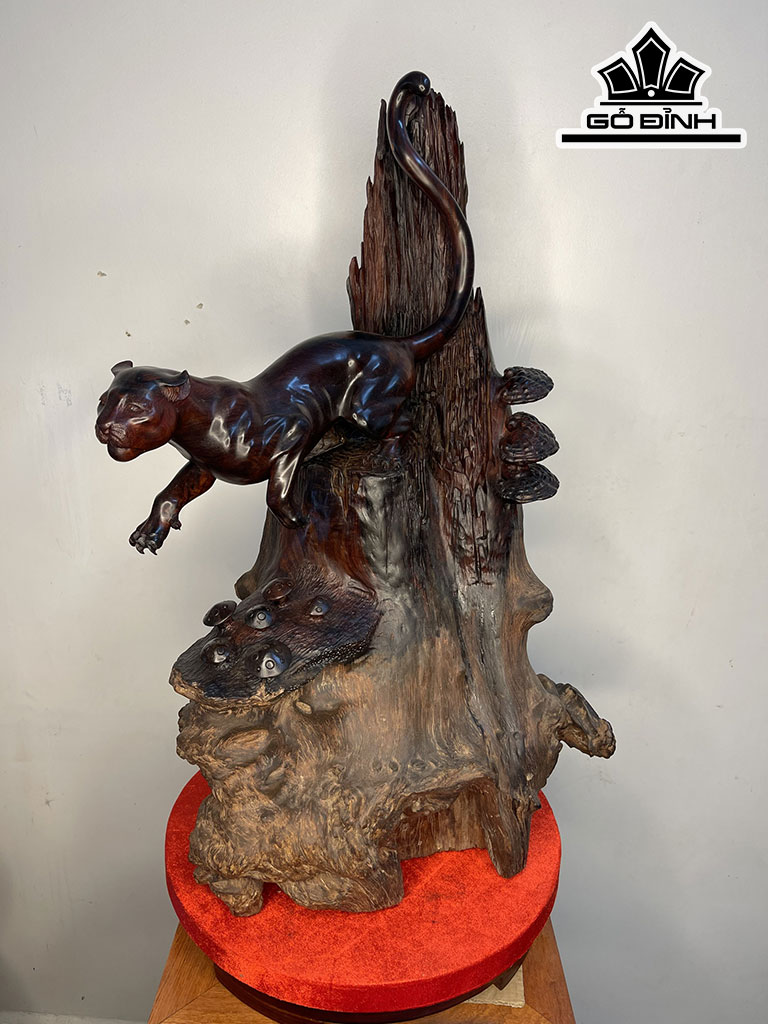 Tượng Báo Săn Mồi Gỗ Nu Trắc Cao 74 Ngang 47 Sâu 36 (cm)
