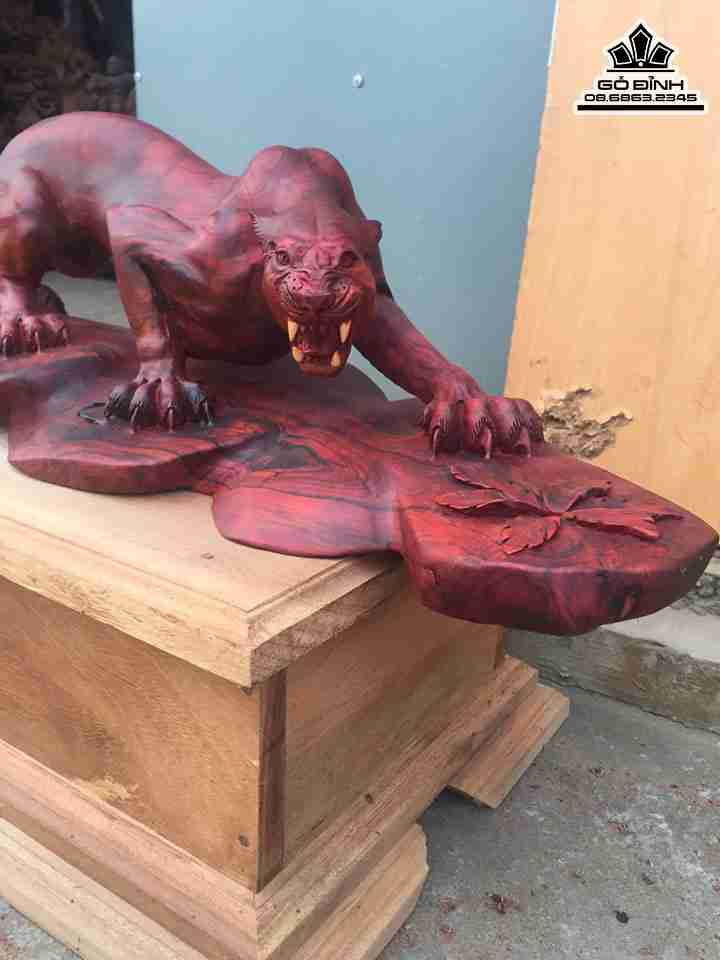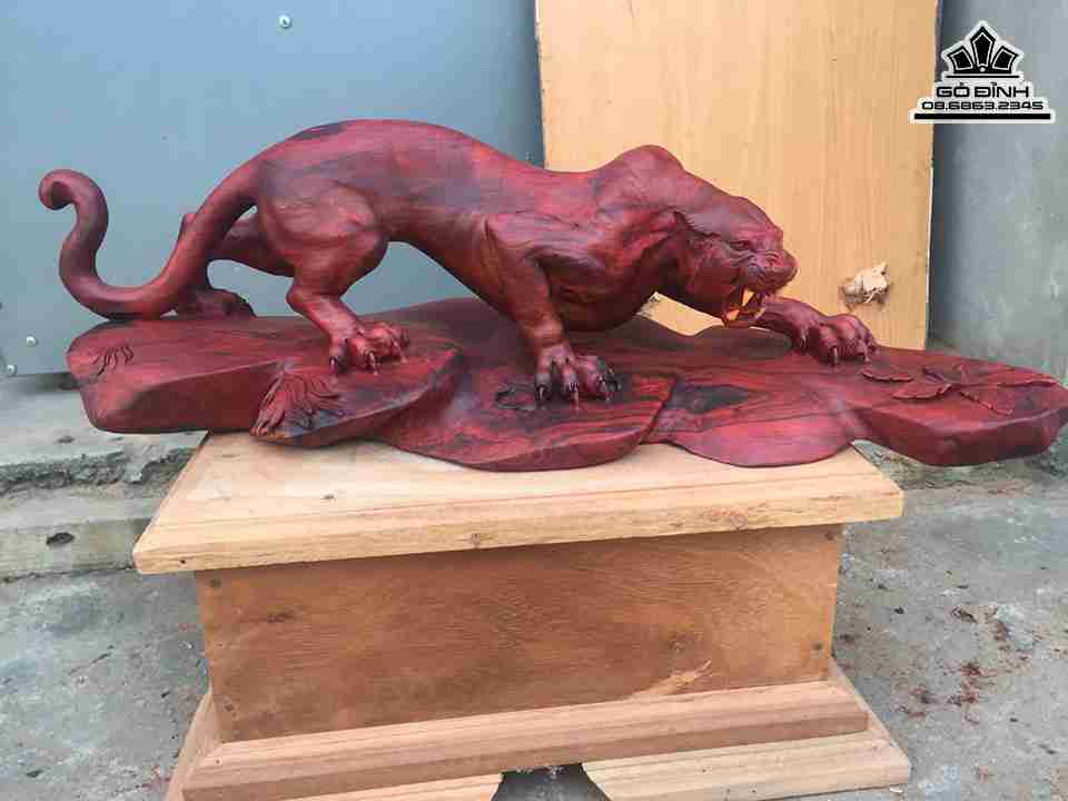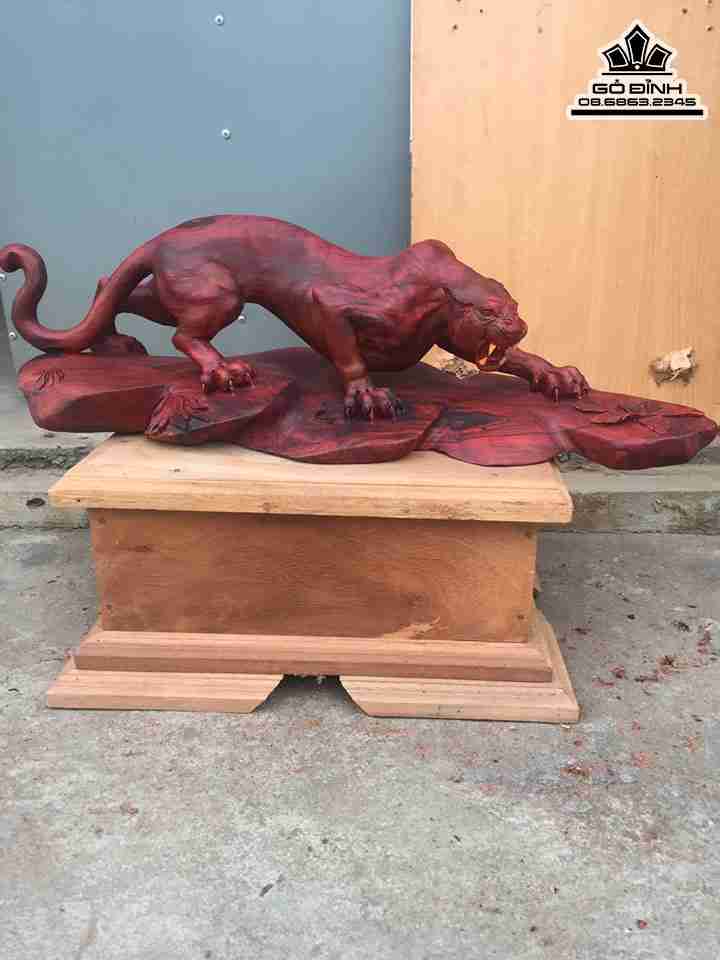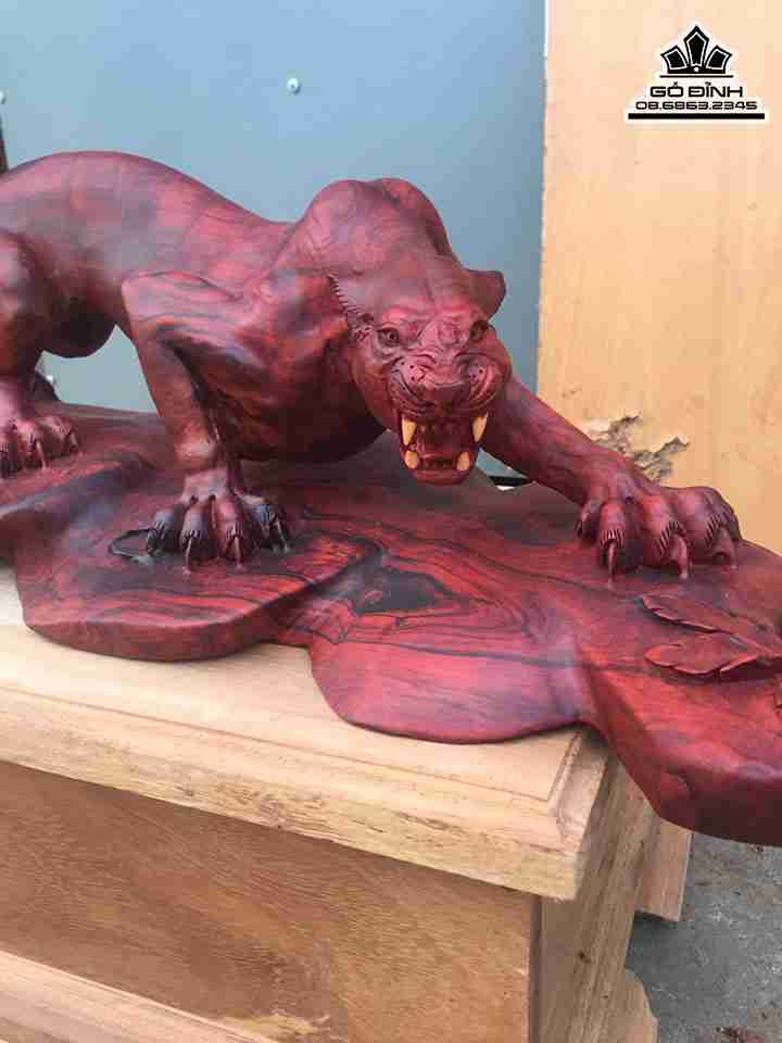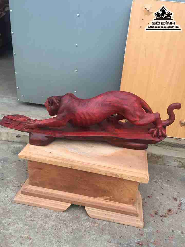 Tượng Báo Săn Mồi Gỗ Trắc Cao 20 Ngang 60 Sâu 19 (cm)