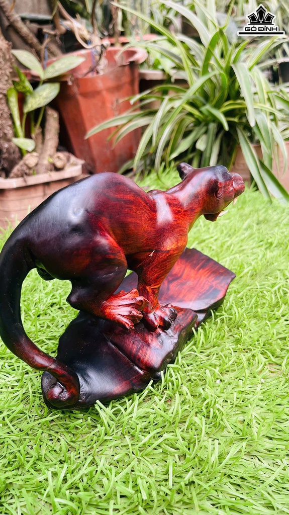 Tượng Báo Săn Mồi Gỗ Trắc Cao 15 Ngang 21 Sâu 8 (cm)