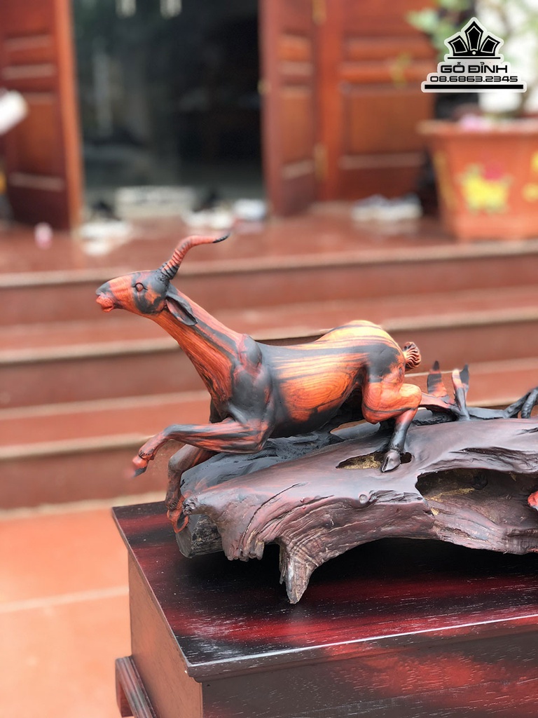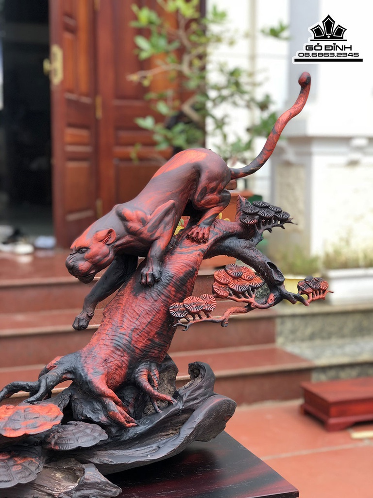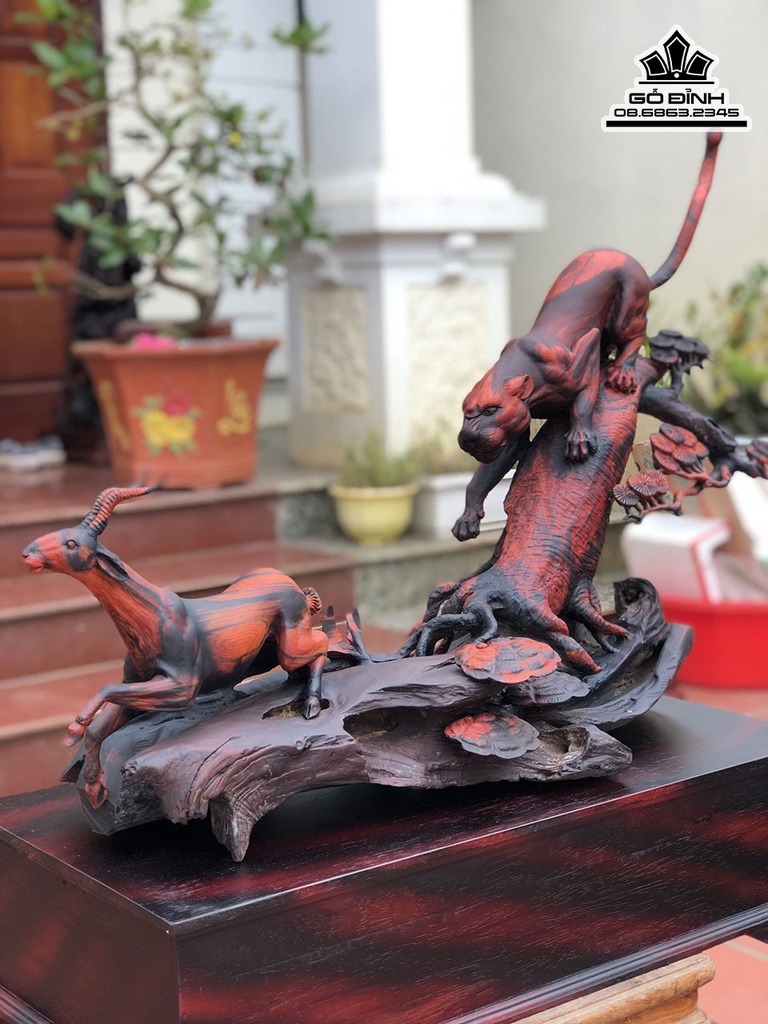 Tượng Báo Săn Mồi Gỗ Trắc Cao 56 Ngang 93 Sâu 30 Cả Kỷ 76 (cm)
