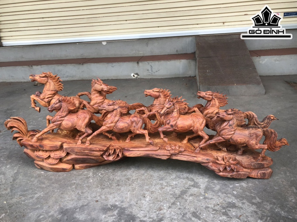 Tượng Bát Mã Gỗ Cẩm Cao 33 Ngang 88 Sâu 18 (cm)