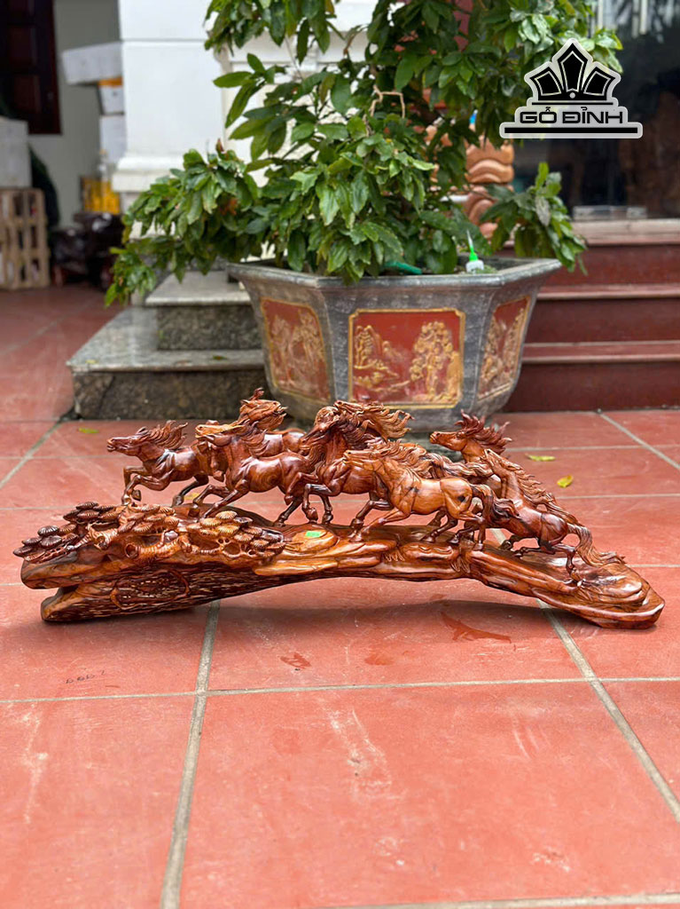 Tượng Bát Mã Gỗ Cẩm Cao 35 Ngang 96 Sâu 26 (cm)