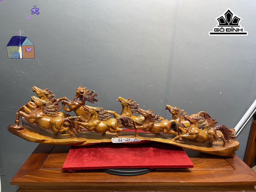 Tượng Bát Mã Gỗ Hương Cao 23 Ngang 82 Sâu 15 (cm)