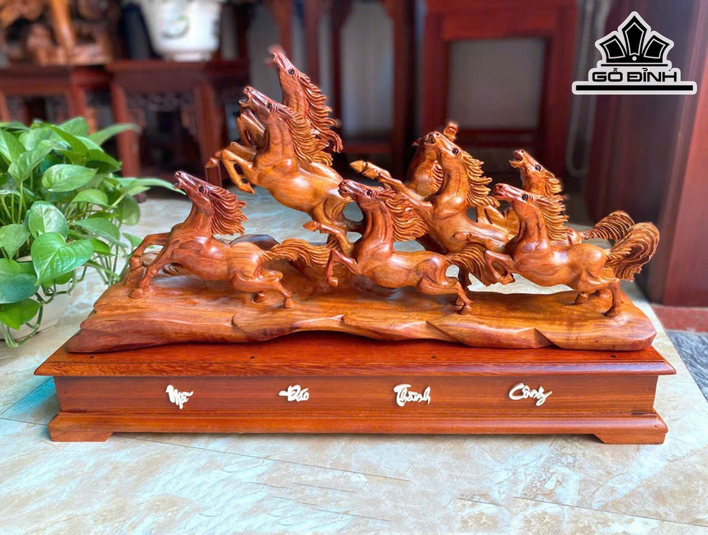 Tượng Bát Mã Gỗ Hương Cao 41 Ngang 62 Sâu 18 (cm)