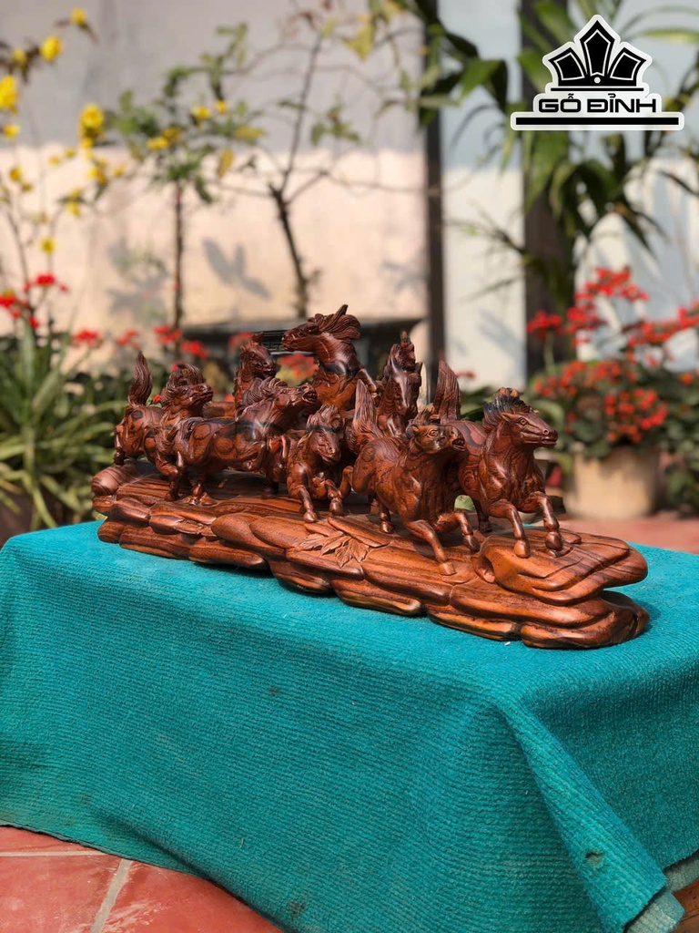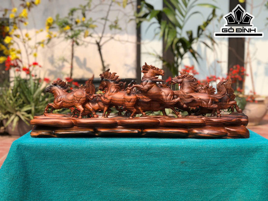 Tượng Bát Mã Gỗ Mun Hoa