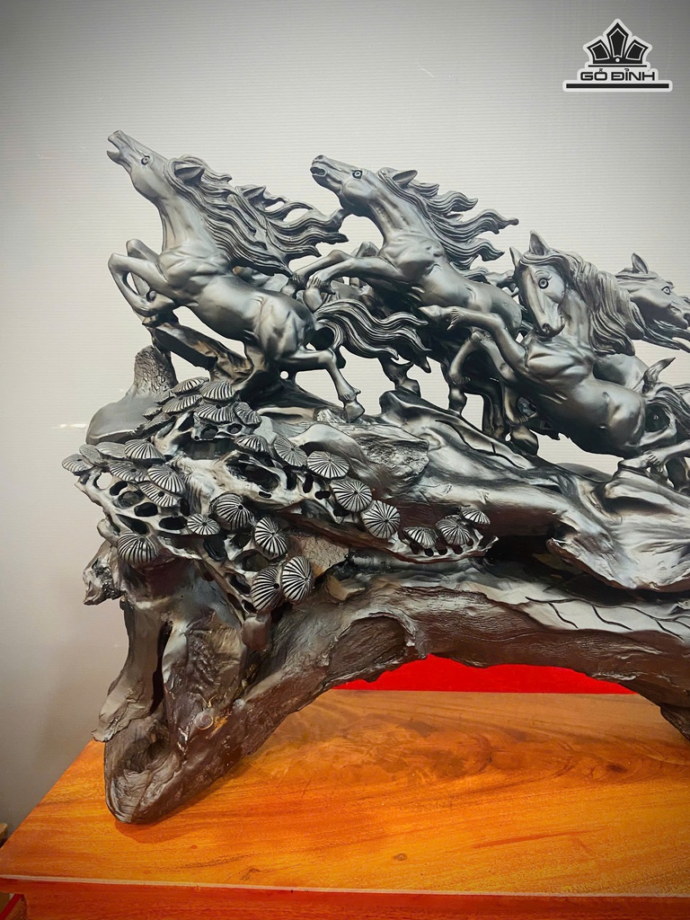 Tượng Bát Mã Gỗ Mun Sừng Cao 46 Ngang 63 Sâu 23 (cm)