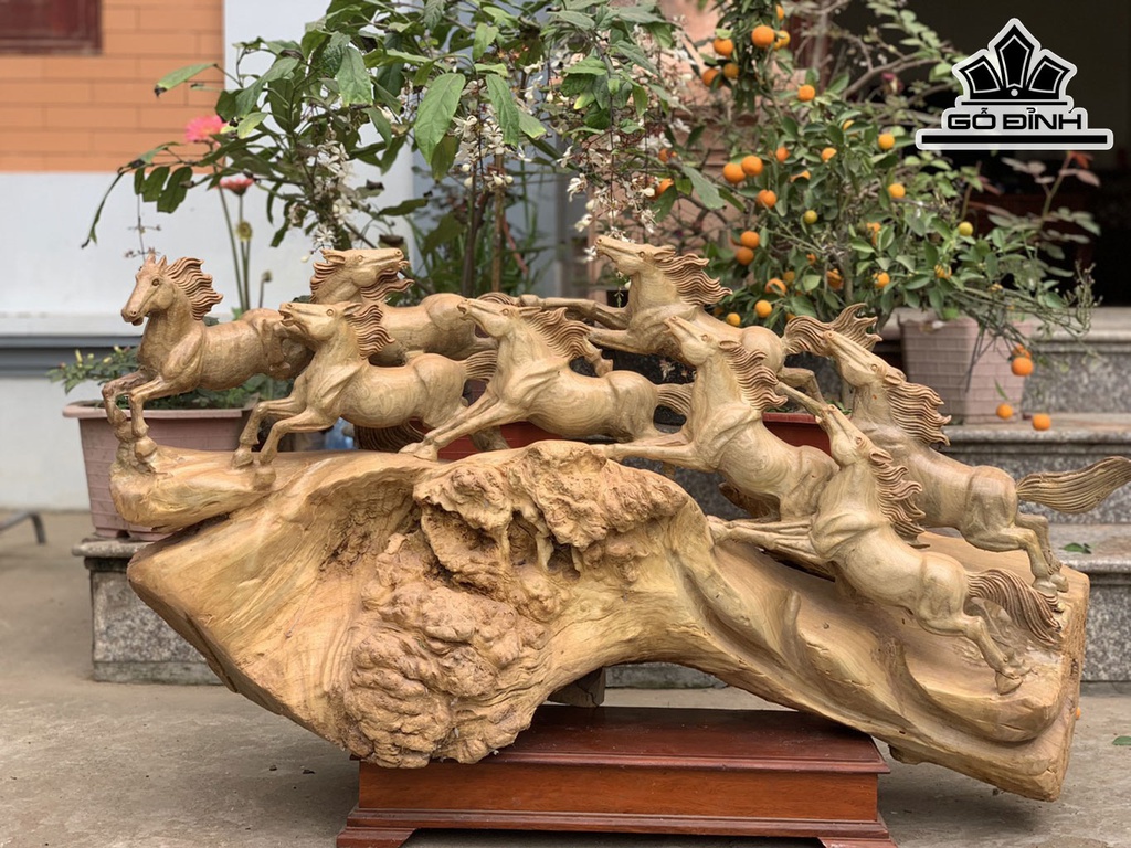 Tượng Bát Mã Gỗ Nu Nghiến Cao 55 Ngang 103 Sâu 45 (cm)