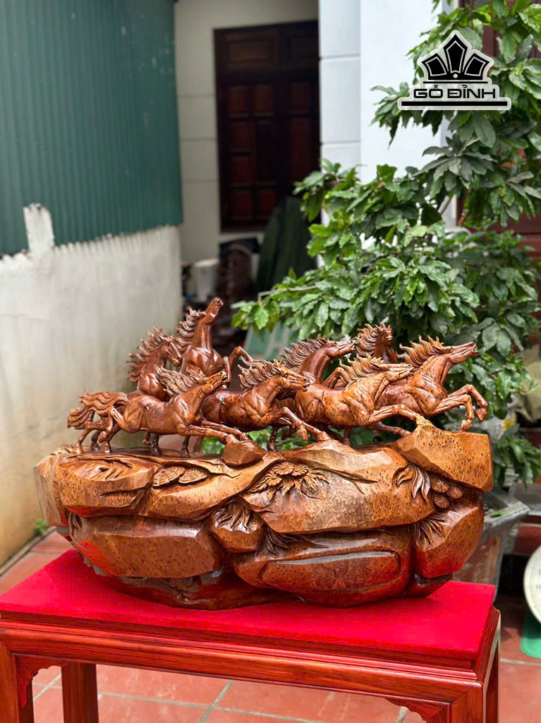 Tượng Bát Mã Gỗ Nu Ngọc Am Cao 60 Ngang 106 Sâu 38 (cm) Cao 120 Cả Kỷ
