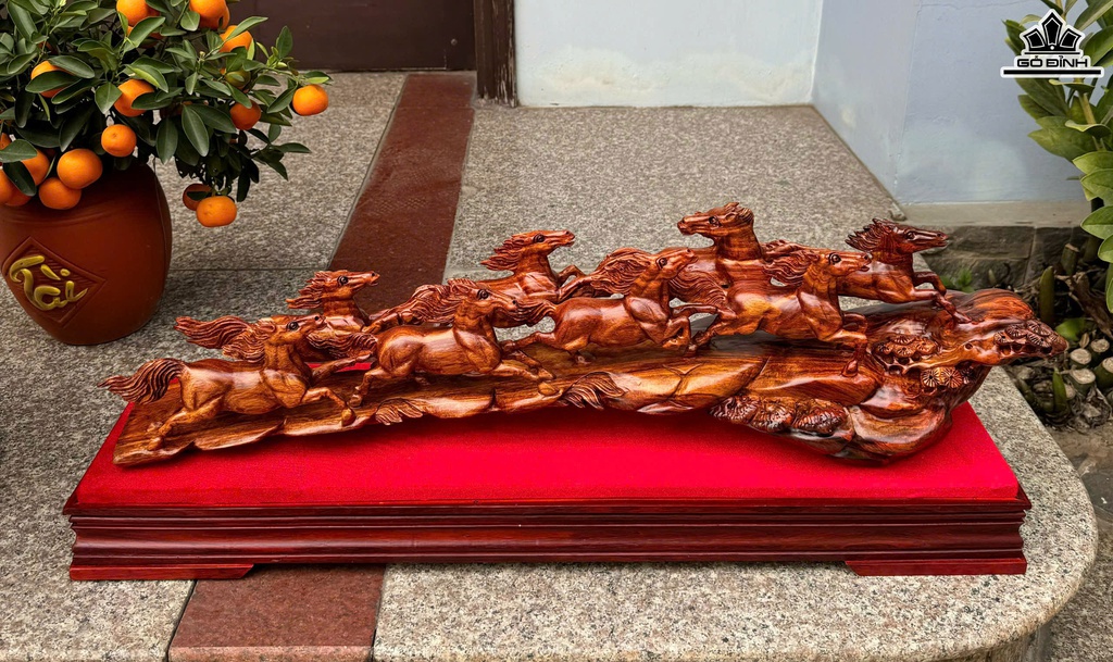 Tượng Bát Mã Gỗ Sưa Cao 21 Ngang 75 Sâu 15 (cm)