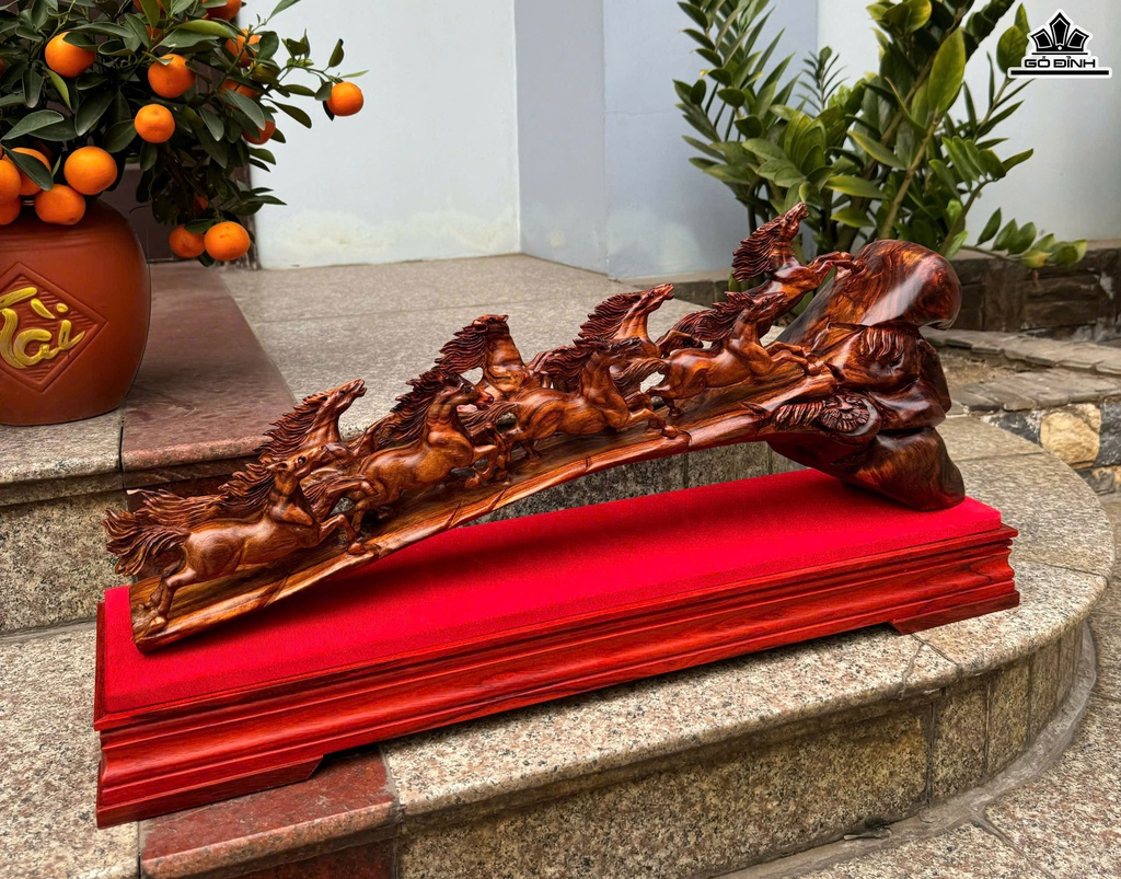 Tượng Bát Mã Gỗ Sưa Cao 26 Ngang 67 Sâu 12 (cm)