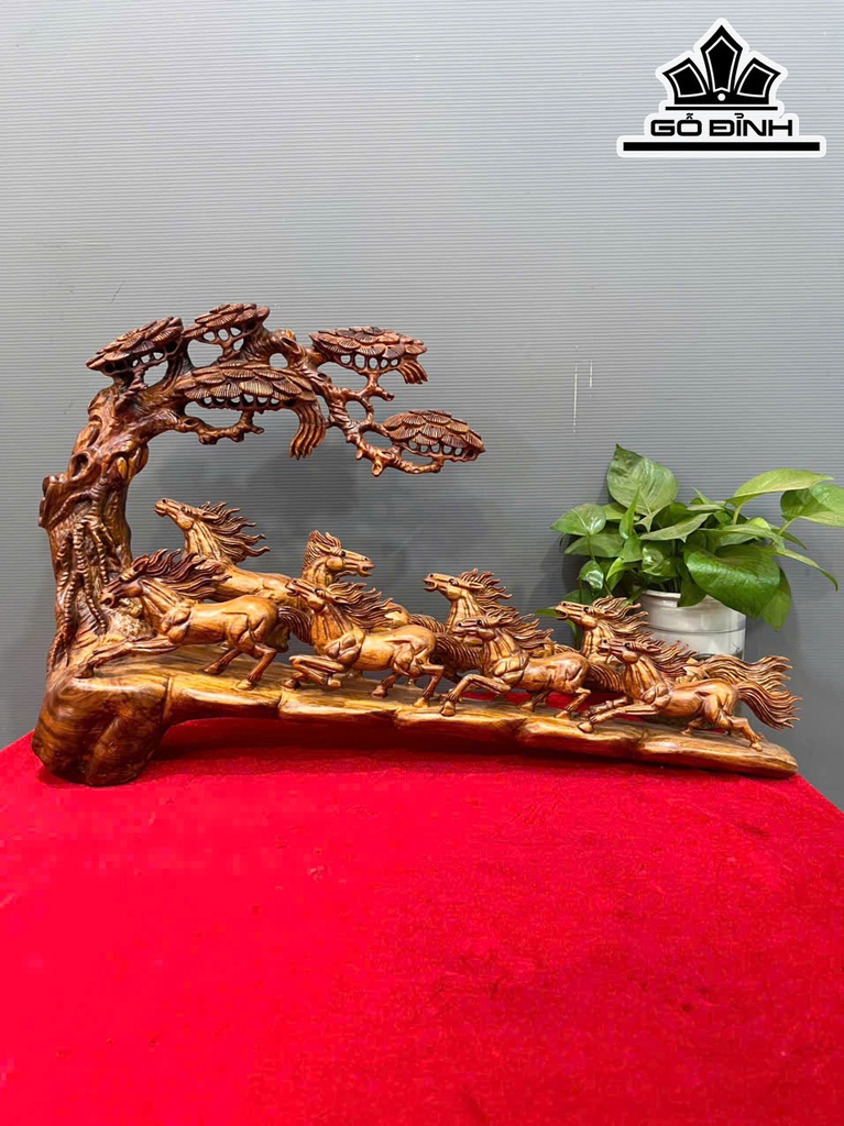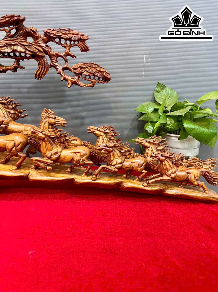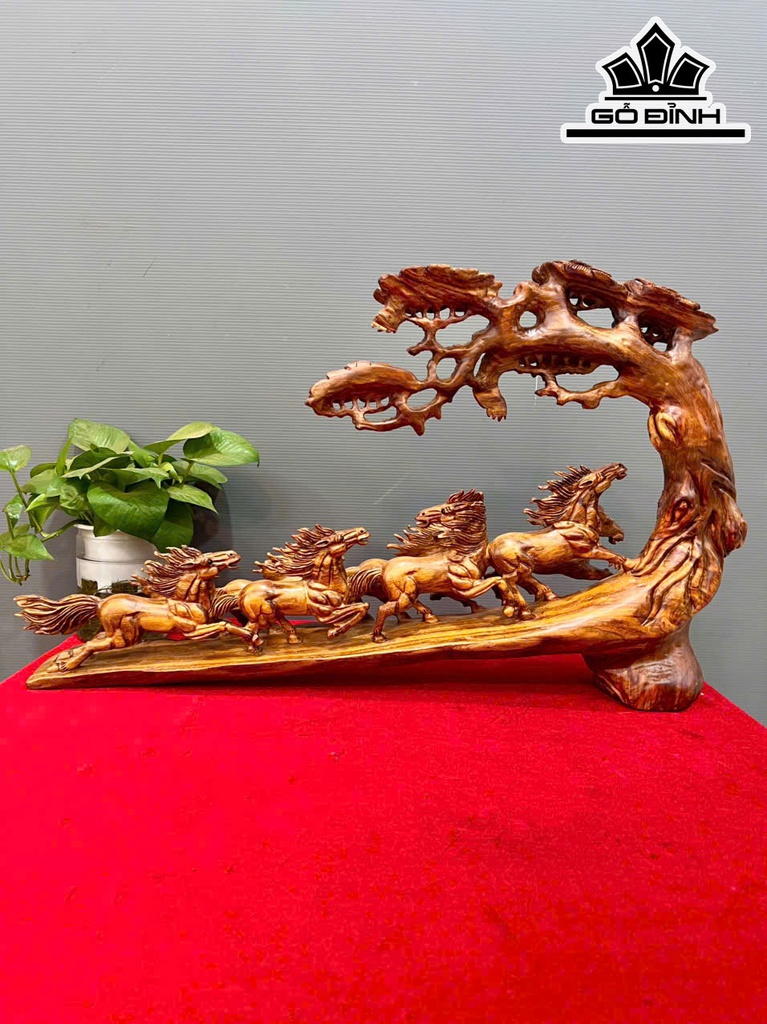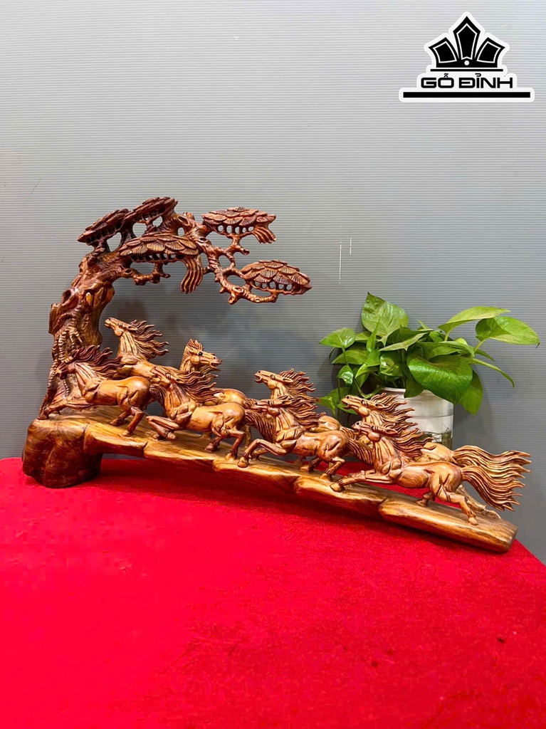 Tượng Bát Mã Gỗ Sưa Cao 38 Ngang 61 Sâu 11 (cm)