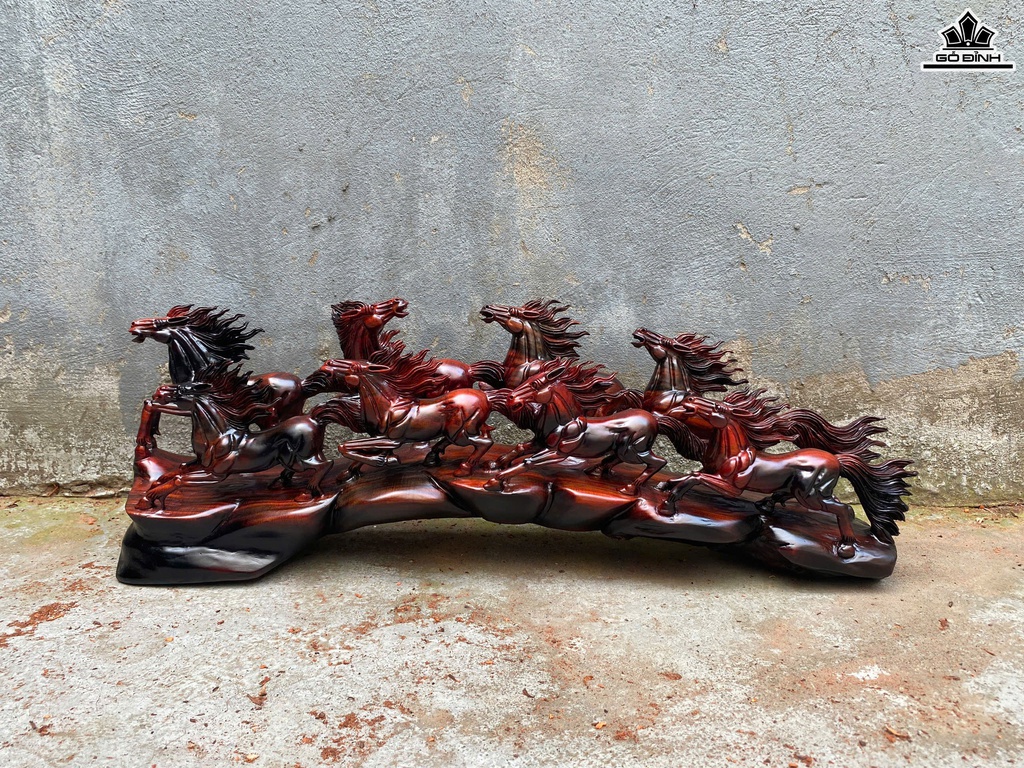 Tượng Bát Mã Gỗ Trắc Cao 23 Ngang 65 Sâu 13 (cm)