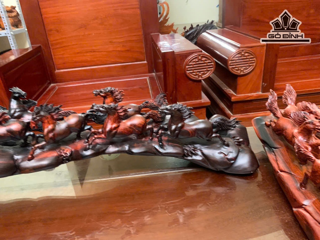 Tượng Bát Mã Gỗ Trắc Cao 23 Ngang 80 Sâu 13 (cm)