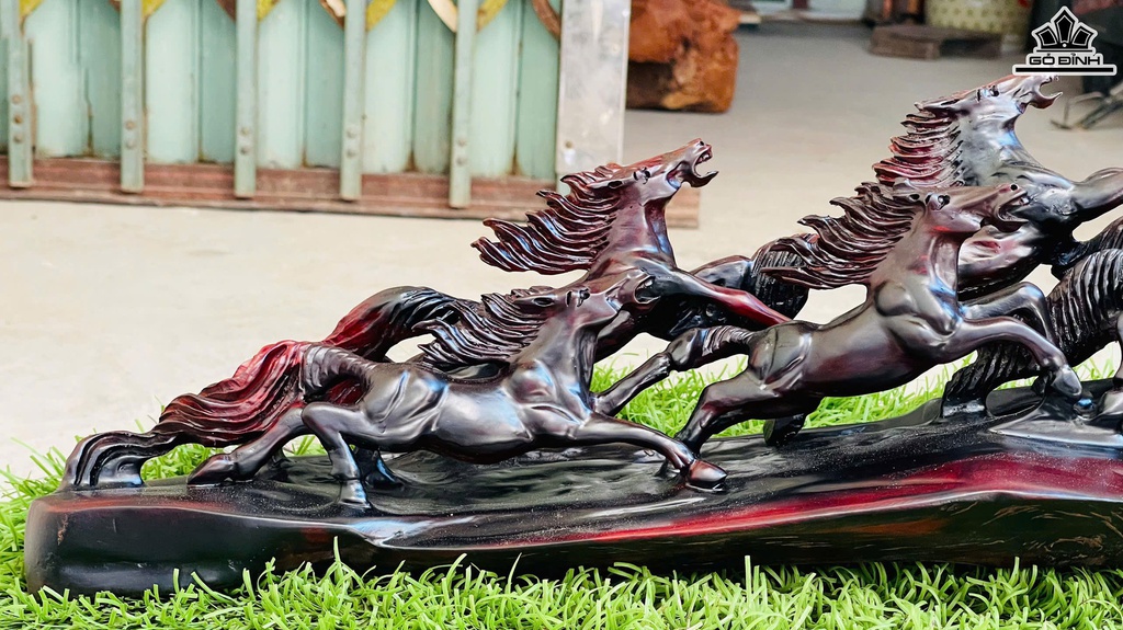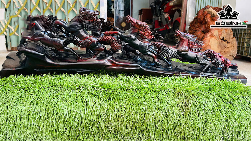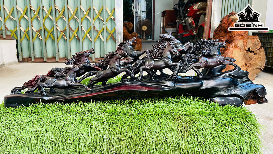 Tượng Bát Mã Gỗ Trắc Cao 24 Ngang 79 Sâu 15 (cm)