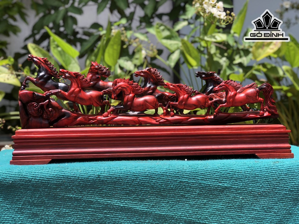 Tượng Bát Mã Gỗ Trắc Cao 27 Ngang 62 Sâu 15 (cm)