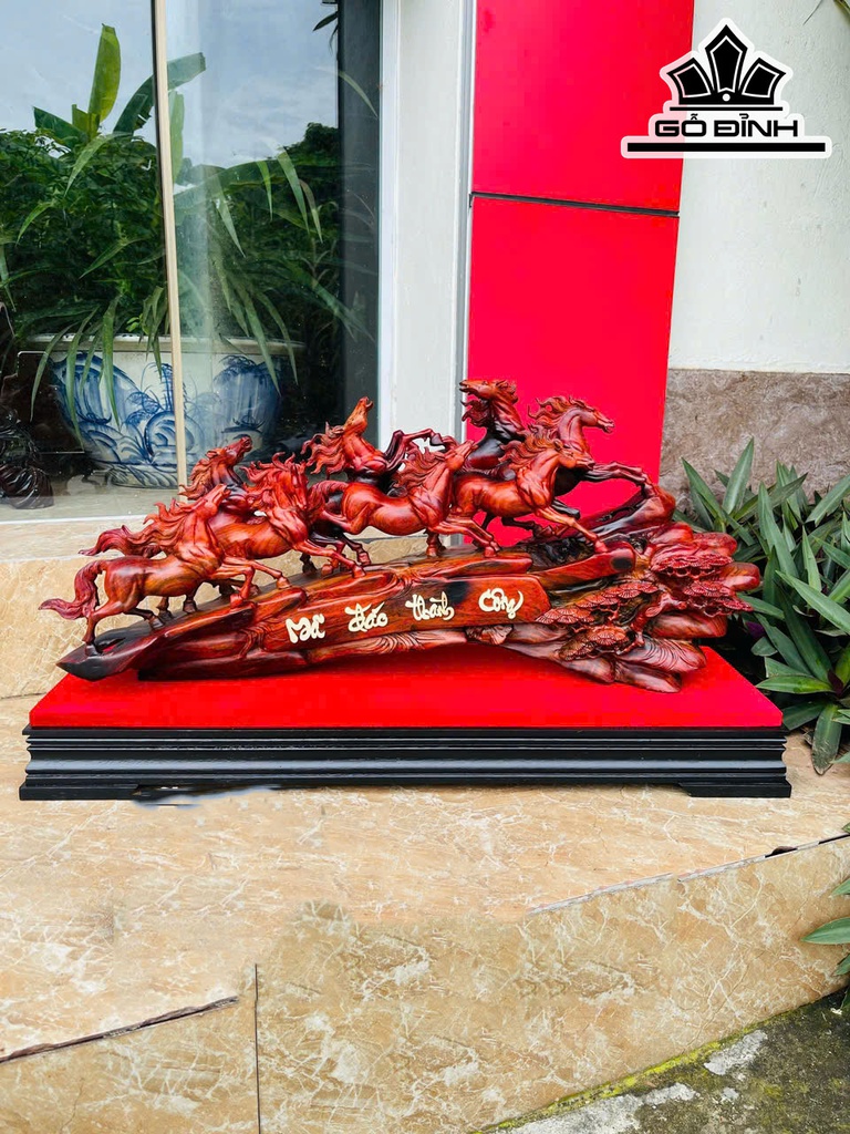 Tượng Bát Mã Gỗ Trắc Cao 31 Ngang 68 Sâu 15 (cm) - Cao Cả Kỷ 39 (cm) - 11kg