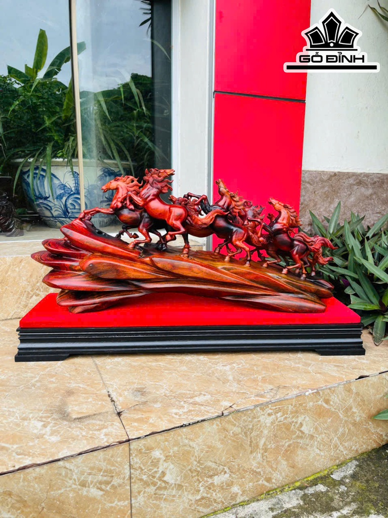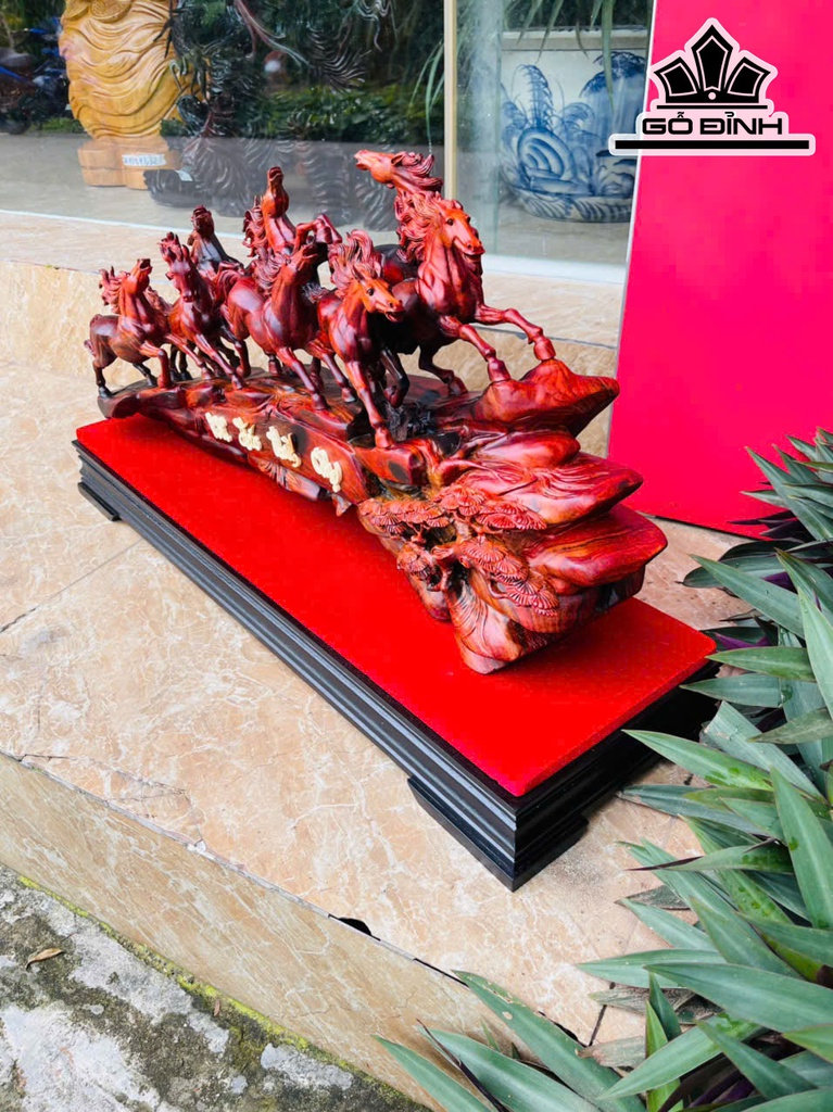Tượng Bát Mã Gỗ Trắc Cao 31 Ngang 68 Sâu 15 (cm) - Cao Cả Kỷ 39 (cm) - 11kg