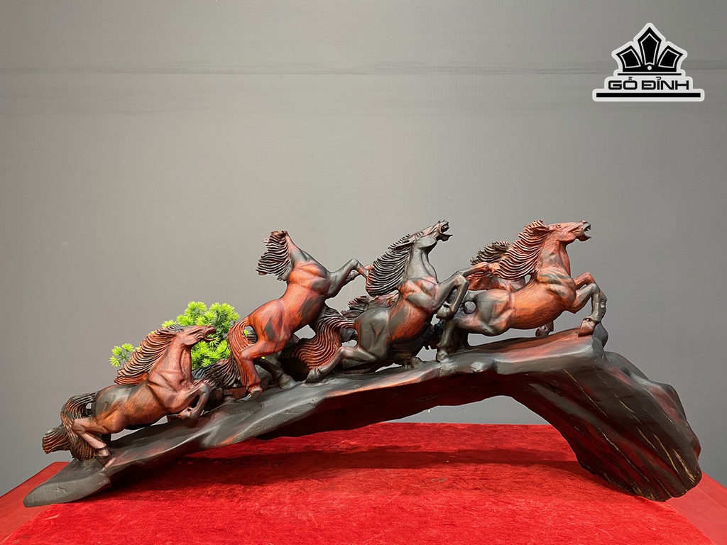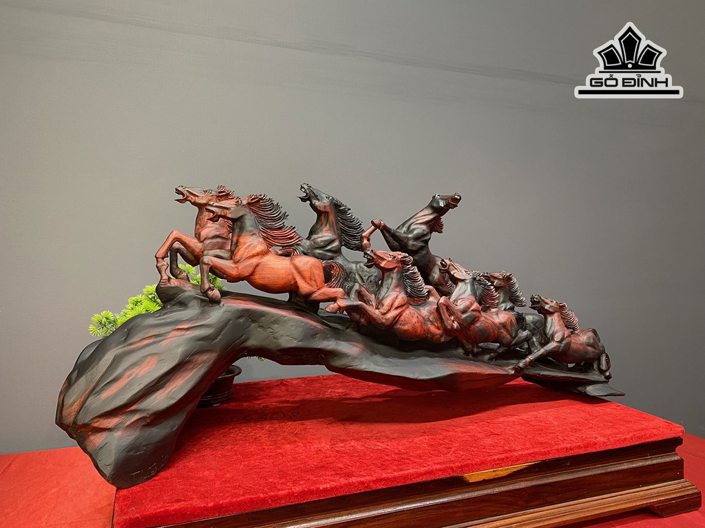 Tượng Bát Mã Gỗ Trắc Cao 35 Ngang 83 Sâu 18 (cm)