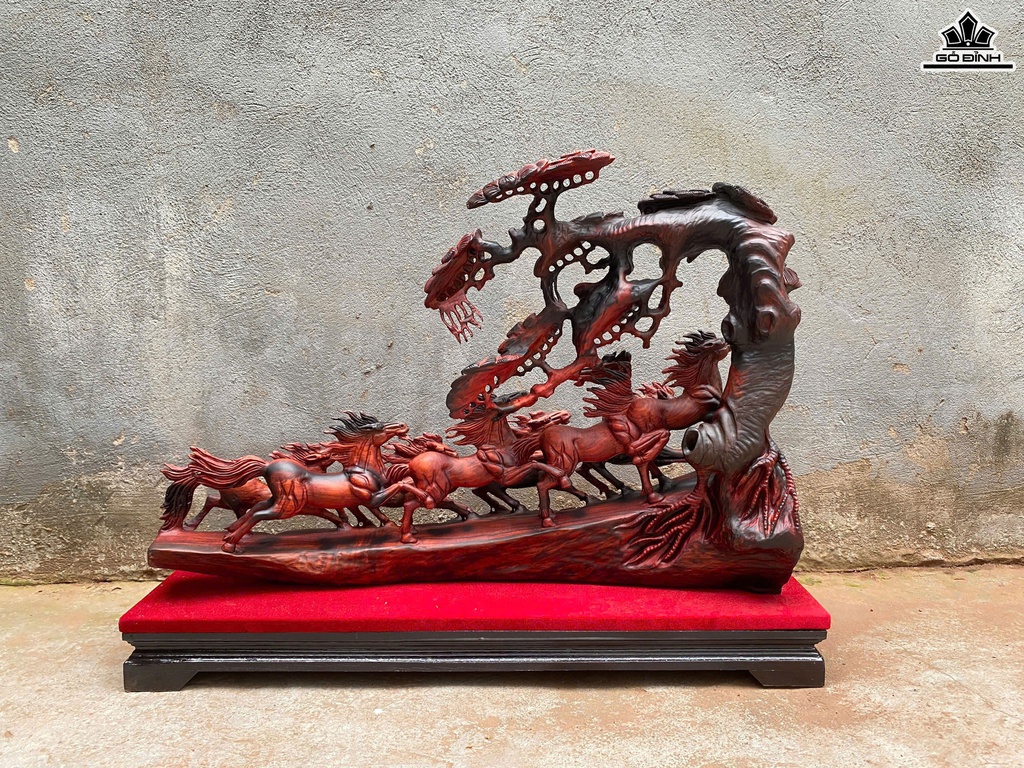 Tượng Bát Mã Gỗ Trắc Cao 46 Ngang 65 Sâu 18 (cm)