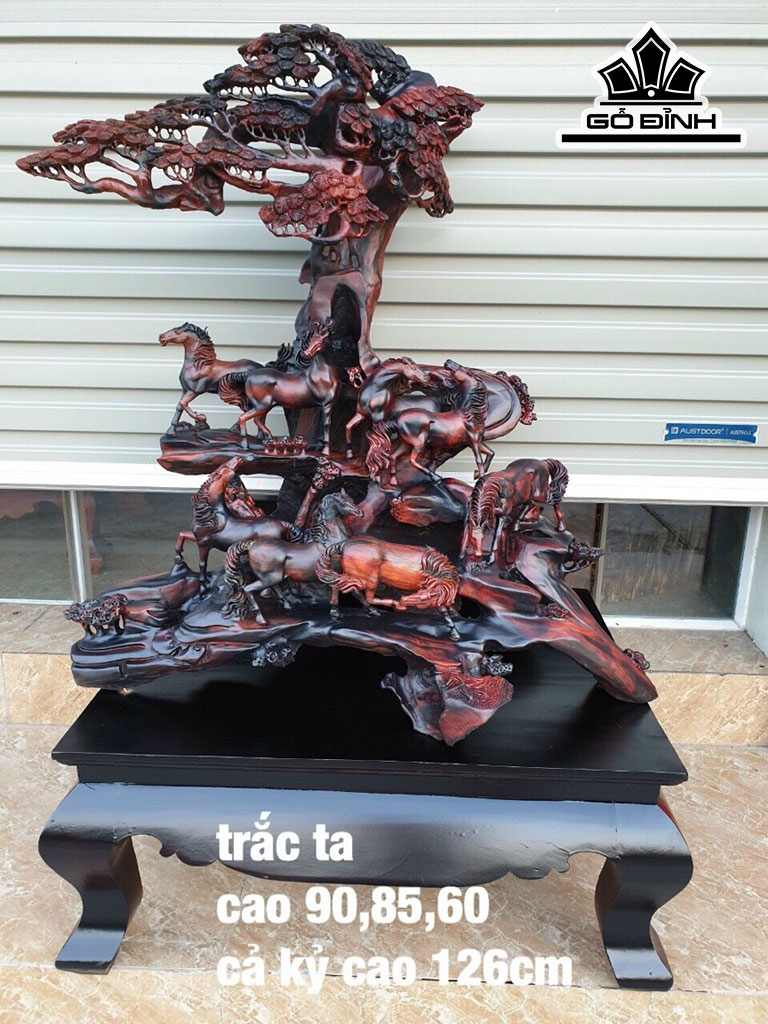 Tượng Bát Mã Gỗ Trắc Cao 90 Ngang 85 Sâu 60 (cm)