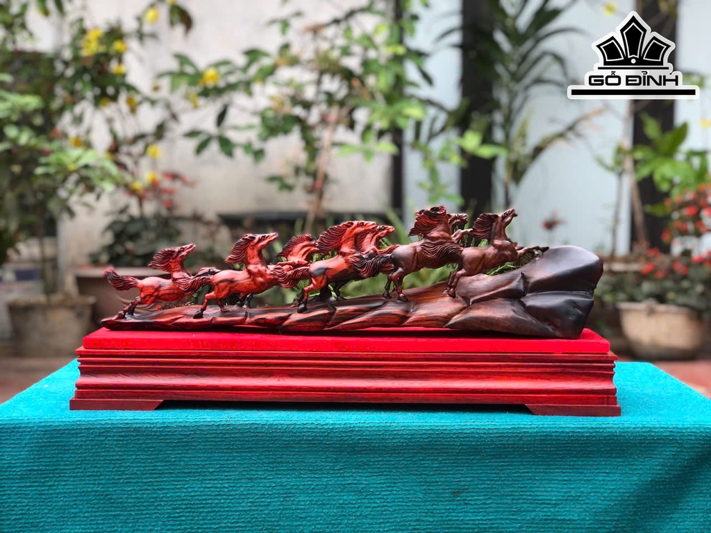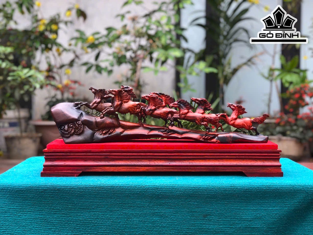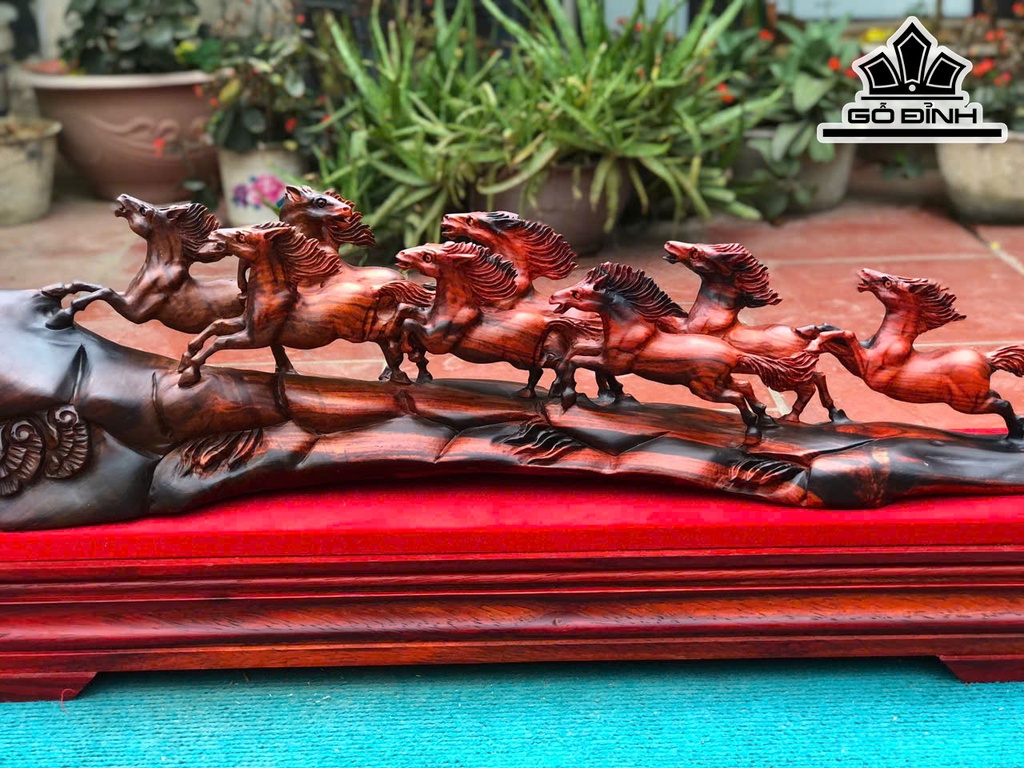 Tượng Bát Mã Gỗ Trắc Cao Cả Kỷ 25 Ngang 59 Sâu 12 (cm)