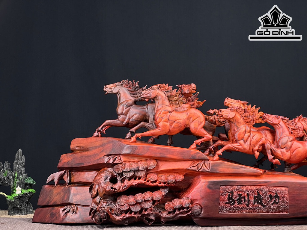 Tượng Bát Mã Gỗ Trắc Ngang 90 Cao 34 Sâu 18 (cm)