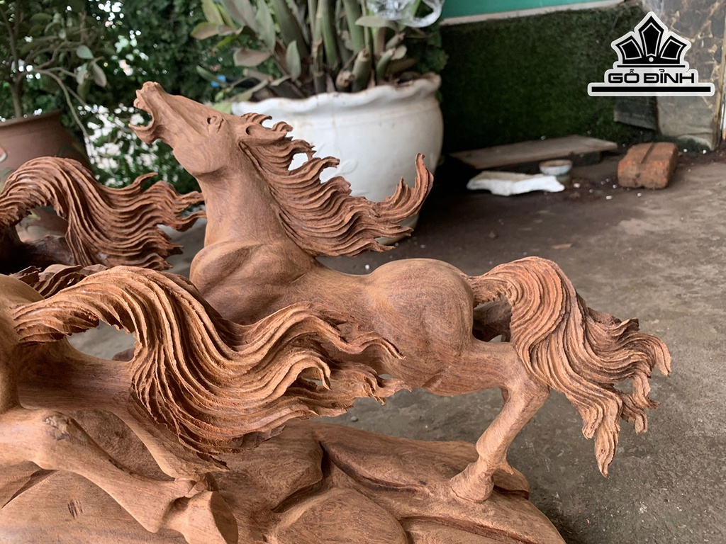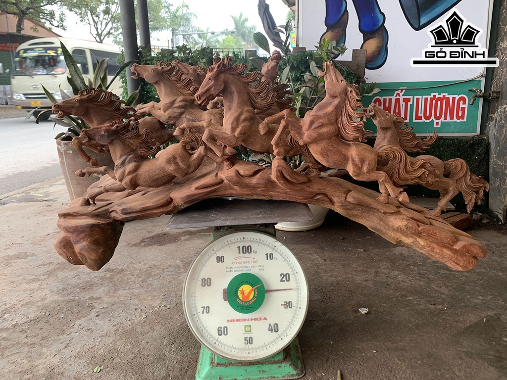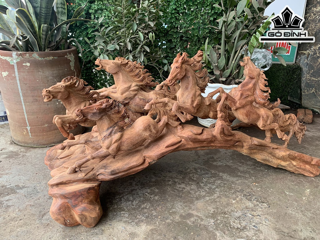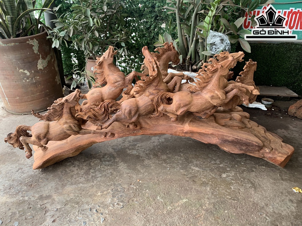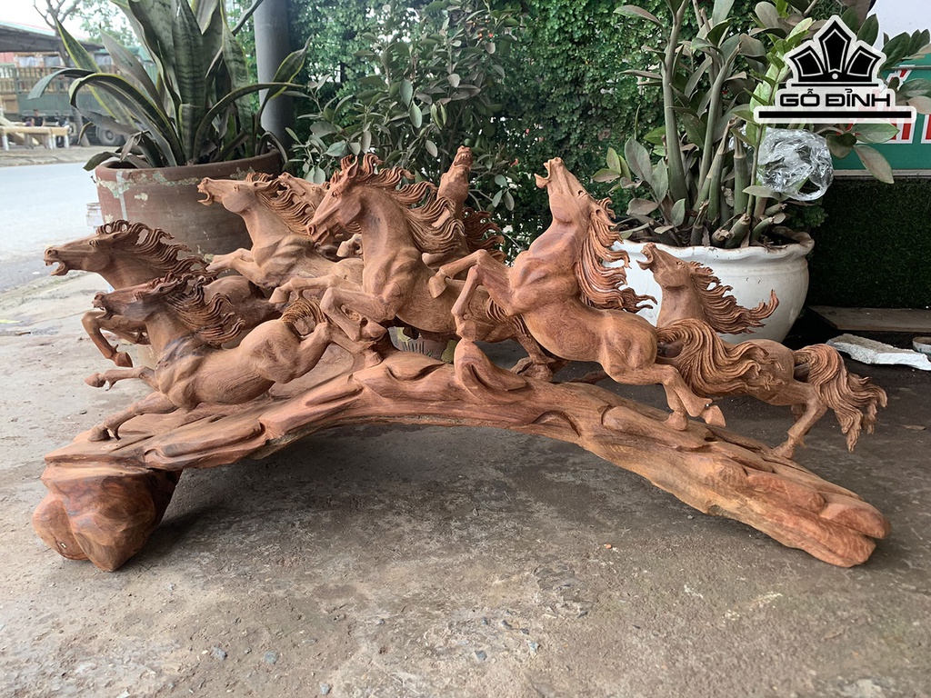 Tượng Bát Mã Phi Thiên Gỗ Hương Cao 47 Ngang 105 Sâu 40 (cm)