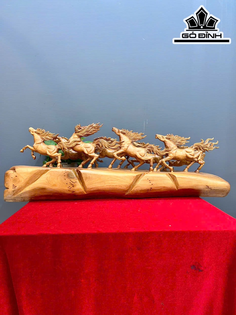 Tượng Bát Mã Phi Thiên Gỗ Ngọc Am Cao 32 Ngang 88 Sâu 28 (cm)